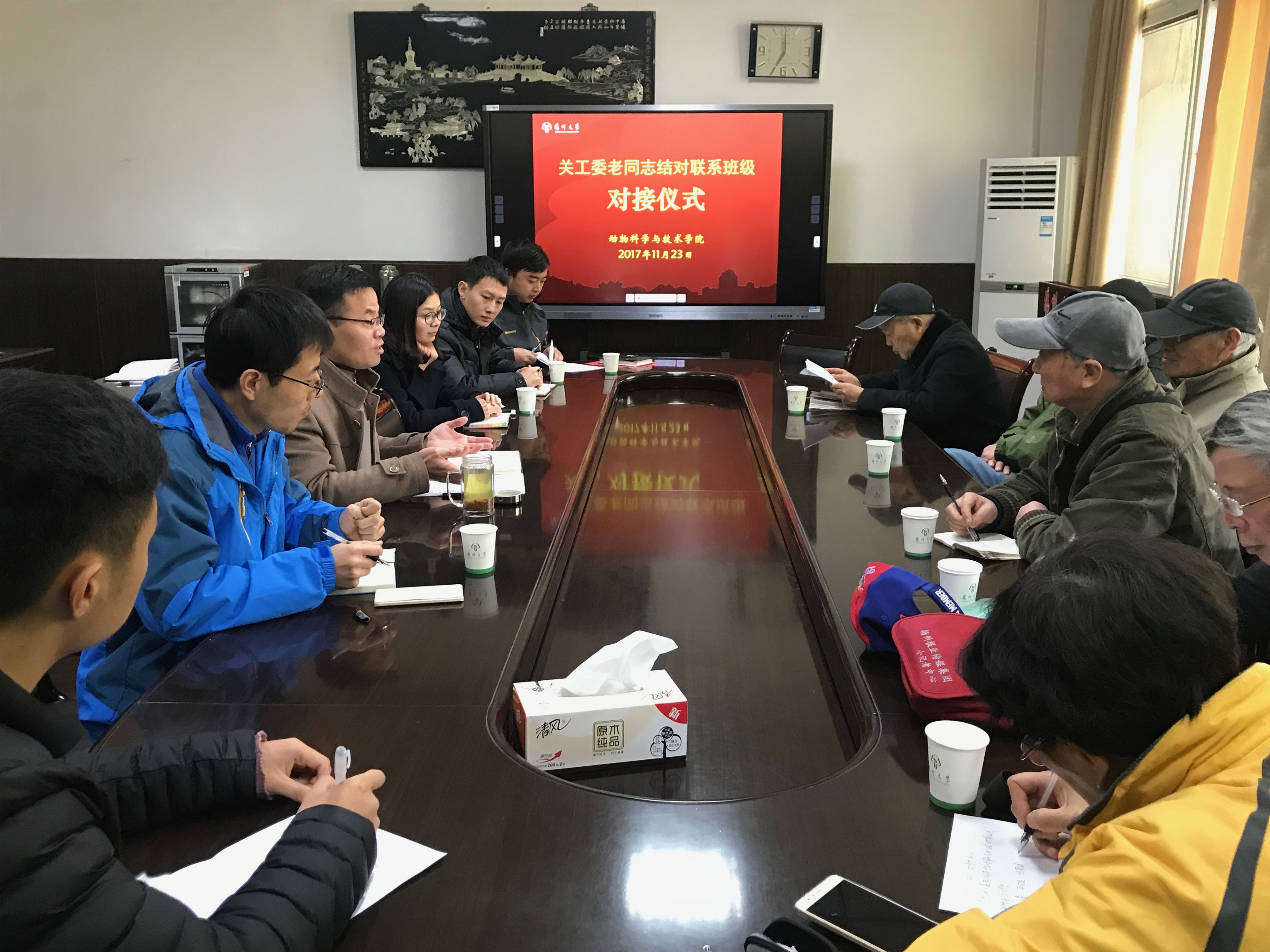 为贯彻落实校第三次党代会、校思想政治工作会议以及校关工委有关会议精神,充分发挥关工委老同志各方面优势,促进学生班集体建设,服务学生成长成才,更好地提高人才培养质量。11月23日,动科学院举行关工委老同志结对联系班级对接仪式。院党委副书记陈立永主持仪式,校关工委办公室主任刘方云,院关工委老同志朱吉勤、赵万里、王翌明、经荣斌、罗方妮等出席活动。