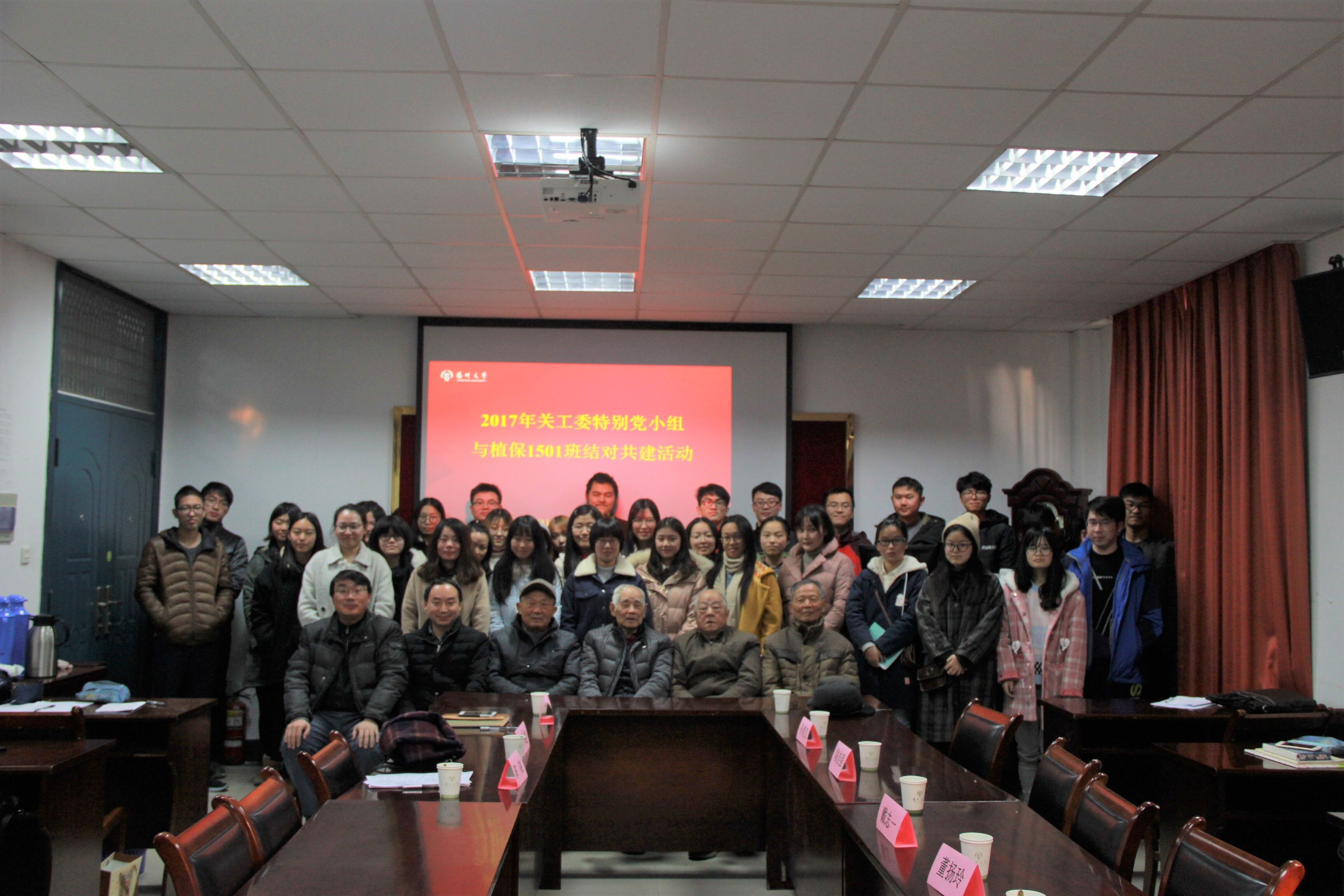 12月6日下午,园植学院在文汇路校区10号楼107会议室顺利开展了关工委特别党小组与植保1501班结对共建活动。出席本次活动的有学院党委副书记周超老师、团委辅导员陈晓老师、植保1501班主任陈小军老师、文汇路关工委第二特别党小组老师、扬州市社会组织培育发展中心信息交流部部长兼扬州市人力资源信息服务协会秘书长杨松儒以及植保1501班的全体同学。