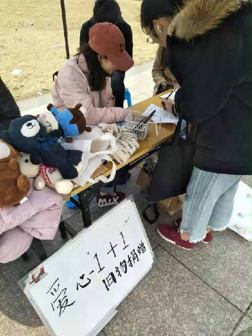 开学初,扬州大学外国语学院青年志愿者协会同学们为丰富“爱心超市”的活动内容及形式,特意举办“爱心1+1”旧物捐赠活动。通过鼓励同学们捐出书籍、衣物、日用品等,宣传"流动旧物,传递爱心"的主题。