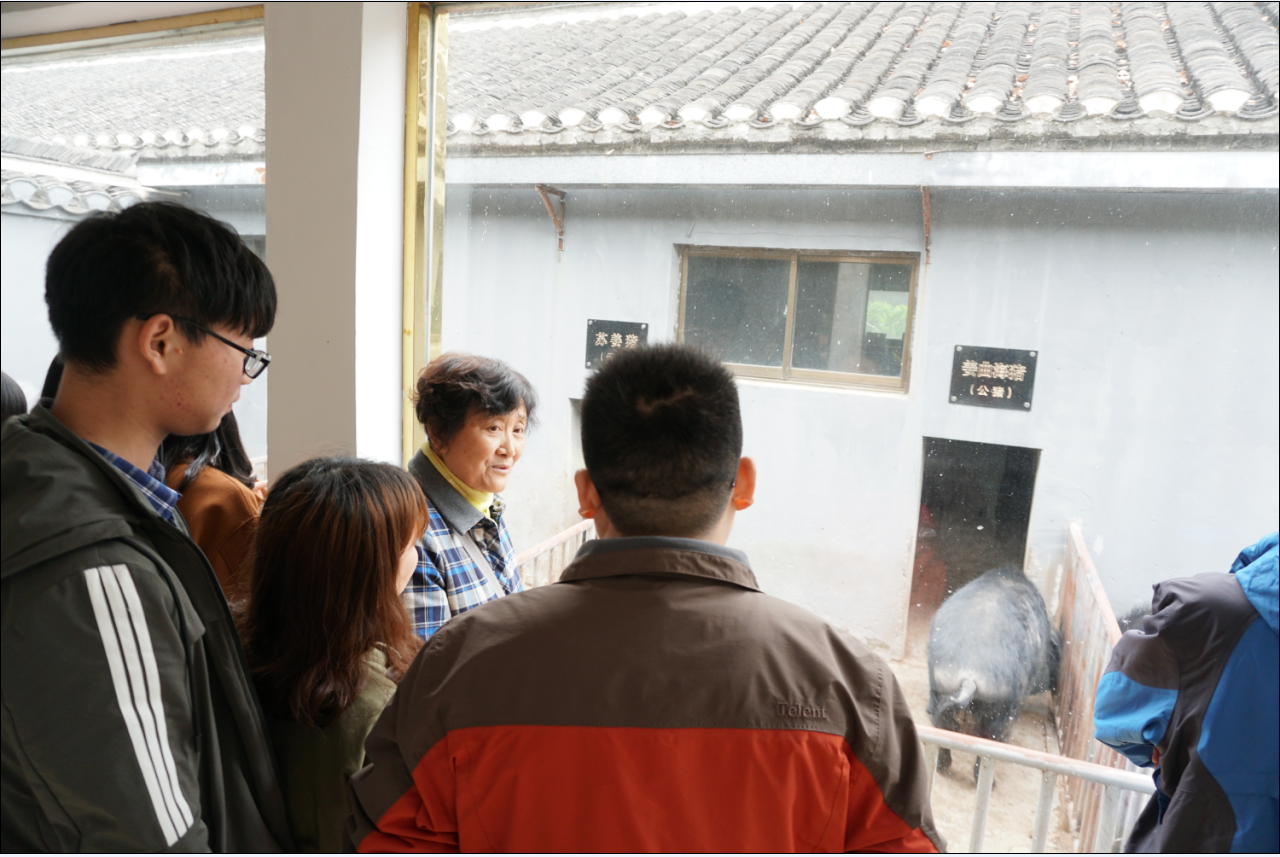 首先,我们来到了江苏苏姜猪有限公司,负责人陶经理通过视频监控向同学们介绍了公猪舍、后备猪舍、配种妊娠舍、分娩舍、保育舍、育肥舍等8幢猪舍,并且配有有先进的自动饲喂系统、温湿度控制系统、视频监控系统、疫病防控系统、粪污生物处理系统等设施设备,同时,公司还设计建设60亩生态种养区,对外可提供旅游观光体验服务。随后,我们来到了江苏农牧学院科技园,在技术人员的带领下依次参观了江曲海猪保护场以及家禽类基因保护基地,让我们更进一步了解了苏姜猪的来历以及各种不同种类的家禽。
