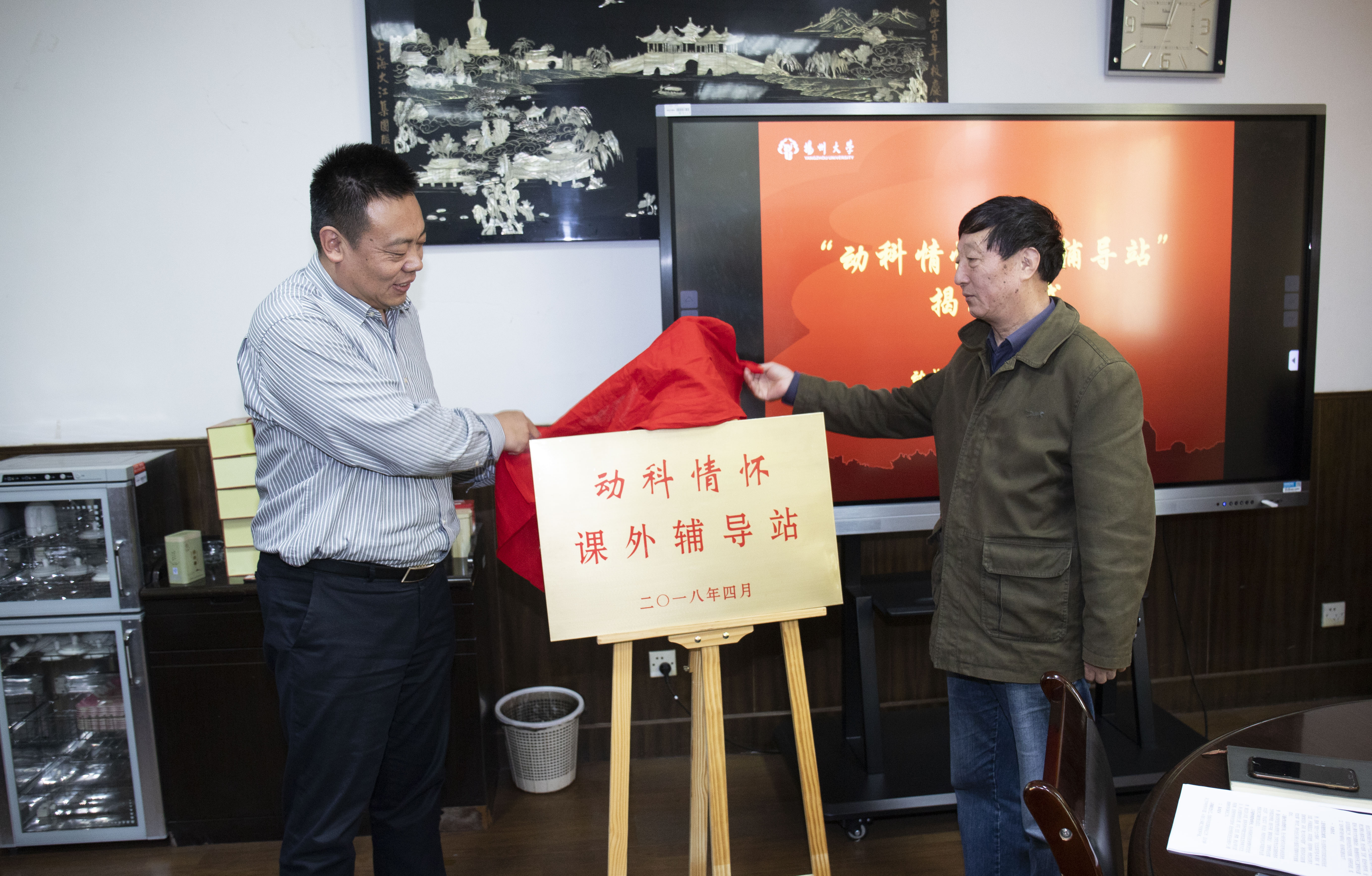 为贯彻落实党的十九大精神、习近平新时代中国特色社会主义思想和做好关心下一代工作重要指示精神为指导,善始善终抓好关工委常态化建设巩固提高工作,推进向优质化方向发展。4月28日,动科学院举行“动科情怀课外辅导站”揭牌暨2018年学生工作“一院一品”项目启动仪式。原校党委副书记、校关工委常务副主任梁隆圣,校离退休处党工委书记杨春燕,校关工委常务副主任叶蕴珊,校关工委办公室主任刘方云、副主任范文,院关工委成员出席活动,院党委副书记王小龙主持仪式。