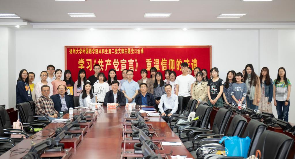 5月3日下午,外国语学院本科生第二党支部在扬子津校区笃行楼同声传译室举行“学习《共产党宣言》重温信仰的力量”主题党日活动,以纪念马克思诞辰200周年、《共产党宣言》发表170周年。校党委副书记叶柏森出席并致辞,校党委常委、宣传部部长张信华,院党委书记刘胜乐、党委副书记崔益军、副院长谢然、组织员袁玫玫,院团委书记刘芳玮、副书记孙月等参加,活动由党支部书记孔阳主持。