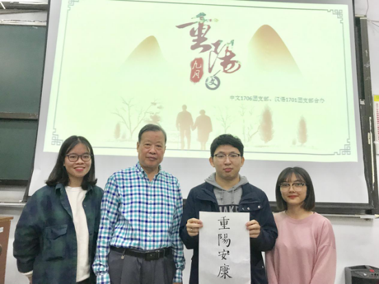 为帮助同学们更好地领略重阳古韵,弘扬优秀的传统习俗文化,10月17日下午3时,文学院中文1706班和汉语1701班,于56号楼共同举办了重阳主题班团活动。院关工委张宏梁老师出席本次活动。