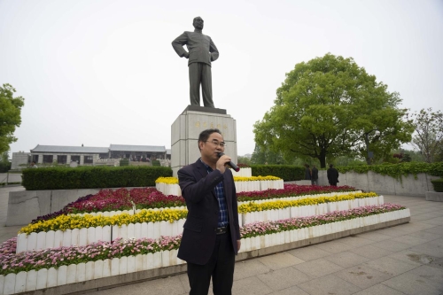徐寅洁同学作为学生代表在周总理铜像前为大家进行了周总理事迹宣讲,她声情并茂地讲述了周恩来总理的政治智慧与家国情怀,许多群众也驻足聆听,更进一步地了解了“恩来精神”。
