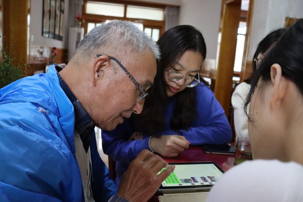 故事分享结束后,严教授带领同学们唱起了《我和我的祖国》,声声动人、情意漫漫,引得众人齐声合唱。一曲结束,严公宝教授手持歌本,又和同学们一起高声合唱起了《歌唱祖国》,耄耋高龄的老教授声音依旧洪亮,唱得激情昂扬,让人热血沸腾,引得同学们连连拍手叫好。