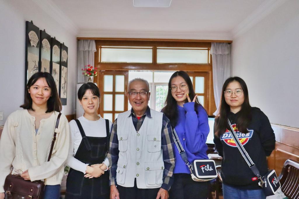 在严教授的家里,严教授分享了自己的成长故事:幼时家中经济拮据,为了凑足初中学费,他去路边拣烟头卷烟纸赚取微薄的收入;为了节约车钱日日徒步上下学,昏暗的路灯和铺在地上的凉席是他的“书房”……说起这些,严教授满脸感慨。一本破旧发黄的《毛泽东选集》,成为他在后来高考填报志愿时义无反顾地选择政教系的理由之一。一个个久远又温暖的小故事,深深感动了在场的每一位学生。