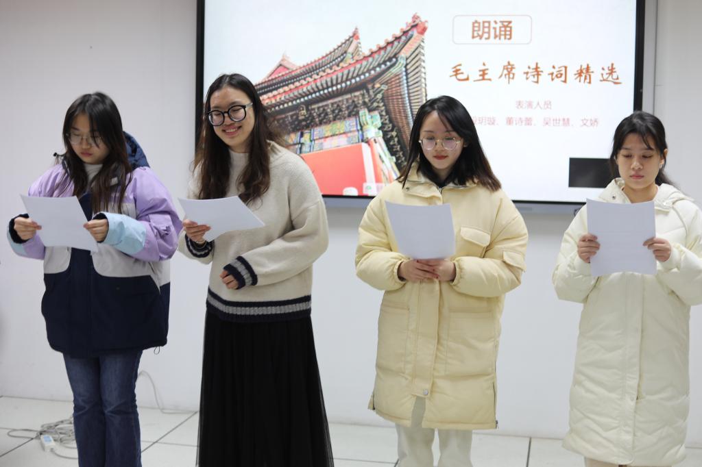 “恰同学少年,风华正茂,书生意气,挥斥方遒……”为迎接即将到来的毛泽东同志诞辰127周年,12月16日下午,扬州大学荷花池校区主楼1113会议室里传来抑扬顿挫的朗诵声,新闻与传媒学院广电1901班的同学们在校关工委老党员严公宝教授的带领下,开展了一场别开生面的毛泽东诗词朗诵歌咏会。院党委副书记刘长平出席活动。