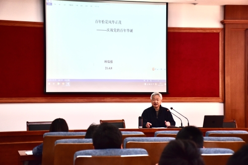 顾教授首先向同学们强调了学习百年党史的重要性,并引用十六字“学史明理、学史增信、学史崇德、学史力行”解释了为什么要学习党史。接着顾书记就六个关键问题进一步解释党史学习的重要性,即“中国共产党为什么‘能’,马克思主义为什么‘行’,社会主义制度为什么‘好’,中国共产党的信仰为什么‘甜’,中国共产党的本色为什么‘美’以及中国共产党的底气为什么‘强’”。