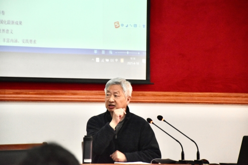 顾教授还阐释了中华民族多年来的“三大问题、四个时期、四大任务及两次飞跃”。他指出在中国积贫积弱的年代,中华民族挨打、挨饿、挨骂,丧失了话语权,而在中国共产党成立之后,中国从此进入了四个关键的时期:新民主主义革命时期,社会主义基本制度的建设时期,改革开放时期和建设现代化强国时期。而中国共产党的任务也相对应的从救国到兴国再到富国最后到强国,而两次飞跃便是毛泽东思想和中国特色社会主义思想的诞生。