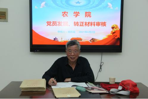 6月2日下午,农学院特邀校关心下一代工作委员会副主任刘方云老师审查党员发展和党员转正的档案材料。