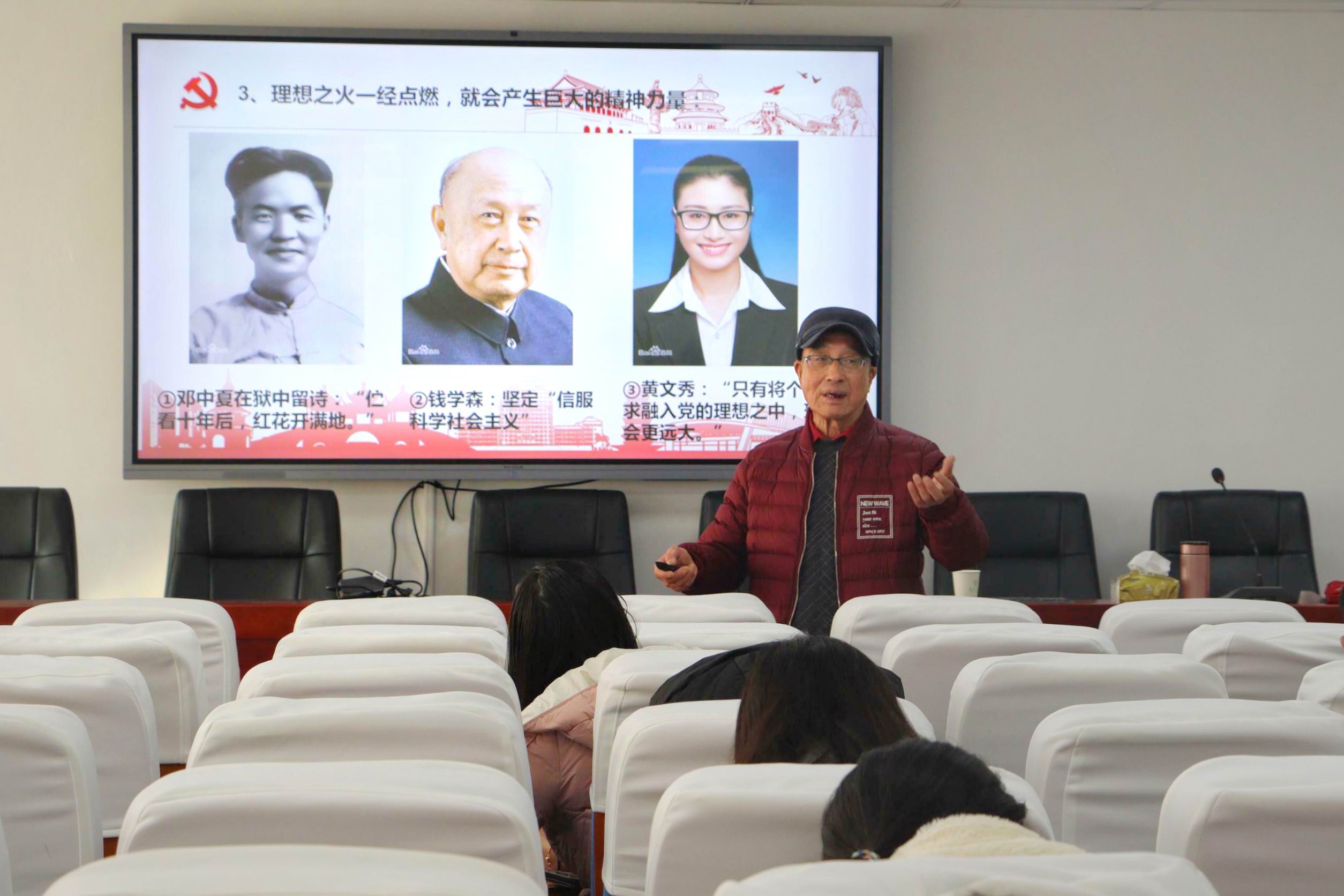 严公宝老师从建党精神内涵、弘扬建党精神的原因及如何担起党员职责三方面展开培训。他引用毛泽东、钱学森讨论救国之法,夏明翰誓死不屈等事例,重点分析建党精神中“坚持真理,坚持理想”,“对党忠诚,不负人民”两点的内涵。通过讲述美国多维的持续打压、苏联解体的深刻教训及国内实际贪污情况等方面情况,严公宝老师强调弘扬建党精神的必要性,并告诫同学们要不断加强理论学习、脚踏实地干事,增强党员责任感。
