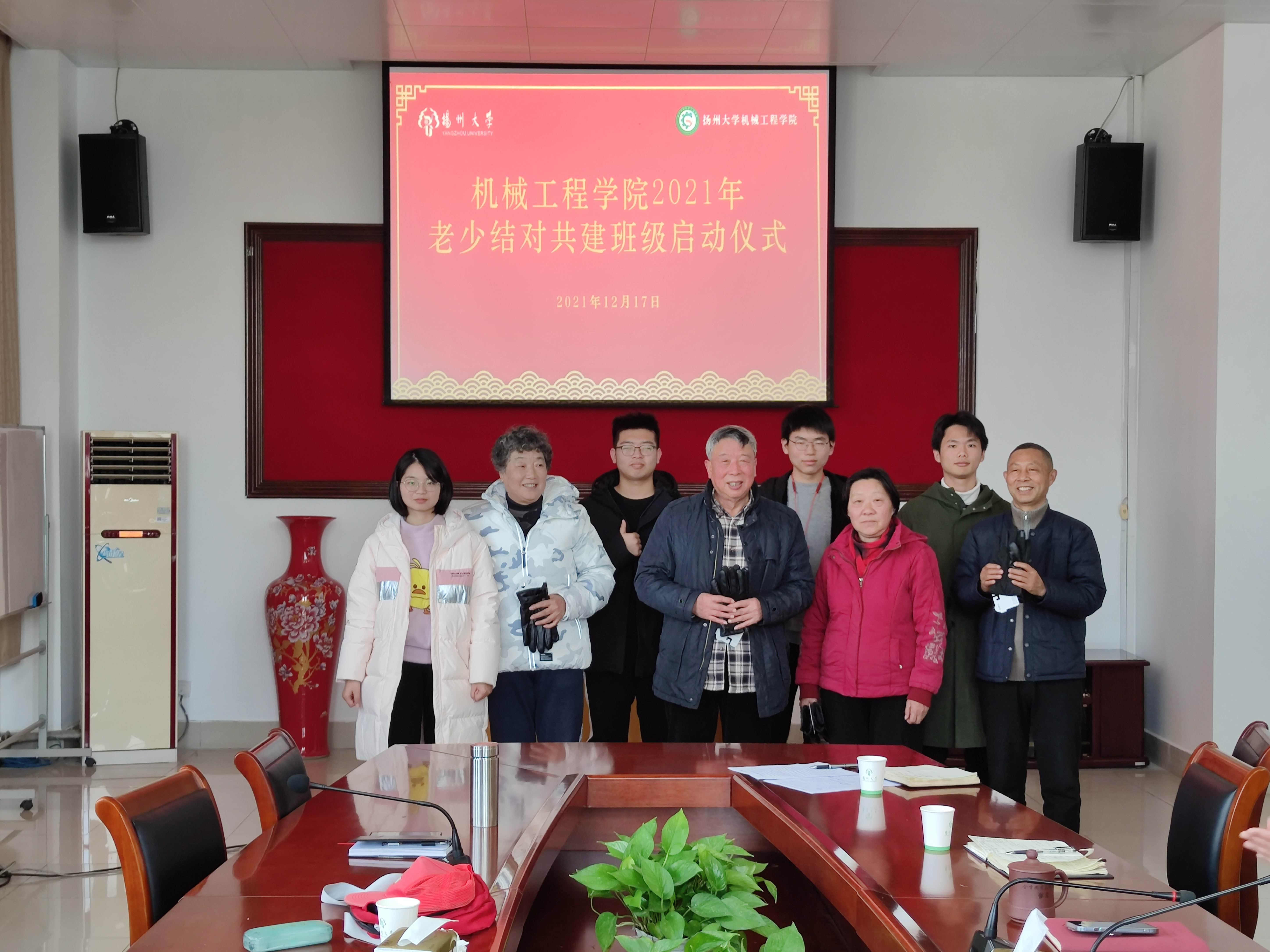 12月17日上午,我院于力行楼s318会议室举行2021年老少结对共建班级启动仪式。我院党委书记、院关工委名誉主任刘汉柏,原院党委书记、关工委副主任卜以江,校关工委副秘书长刘方云,江阳路北校区离退休党总支书记赵玉华、院关工委副主任、江阳路北校区离退休第一党支部书记李传伟,支委张晨阳,学院关工委全体委员及共建班级机械2103班主任路恩会和全班同学参加此次仪式。院党委副书记、院关工委主任张平主持此仪式。