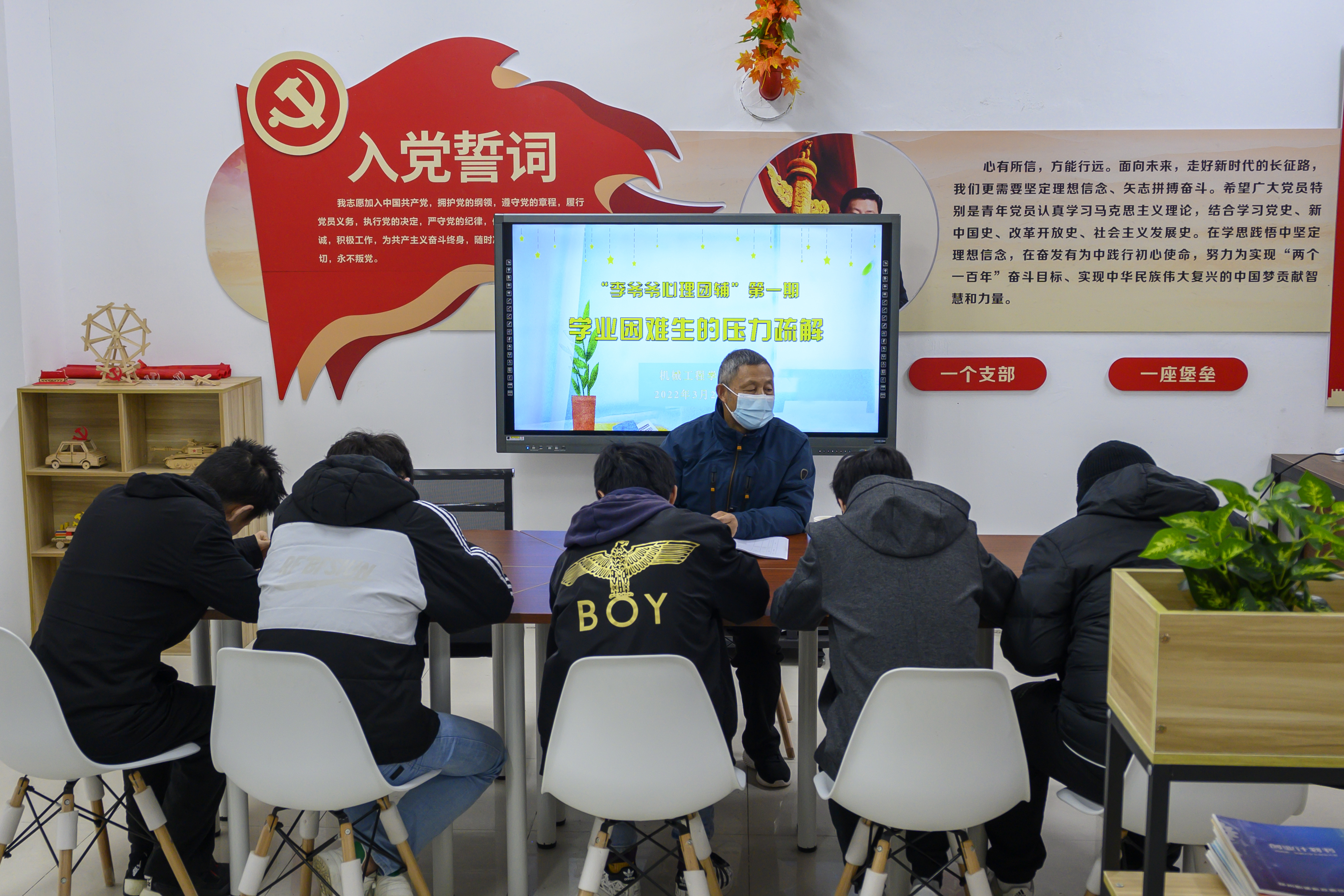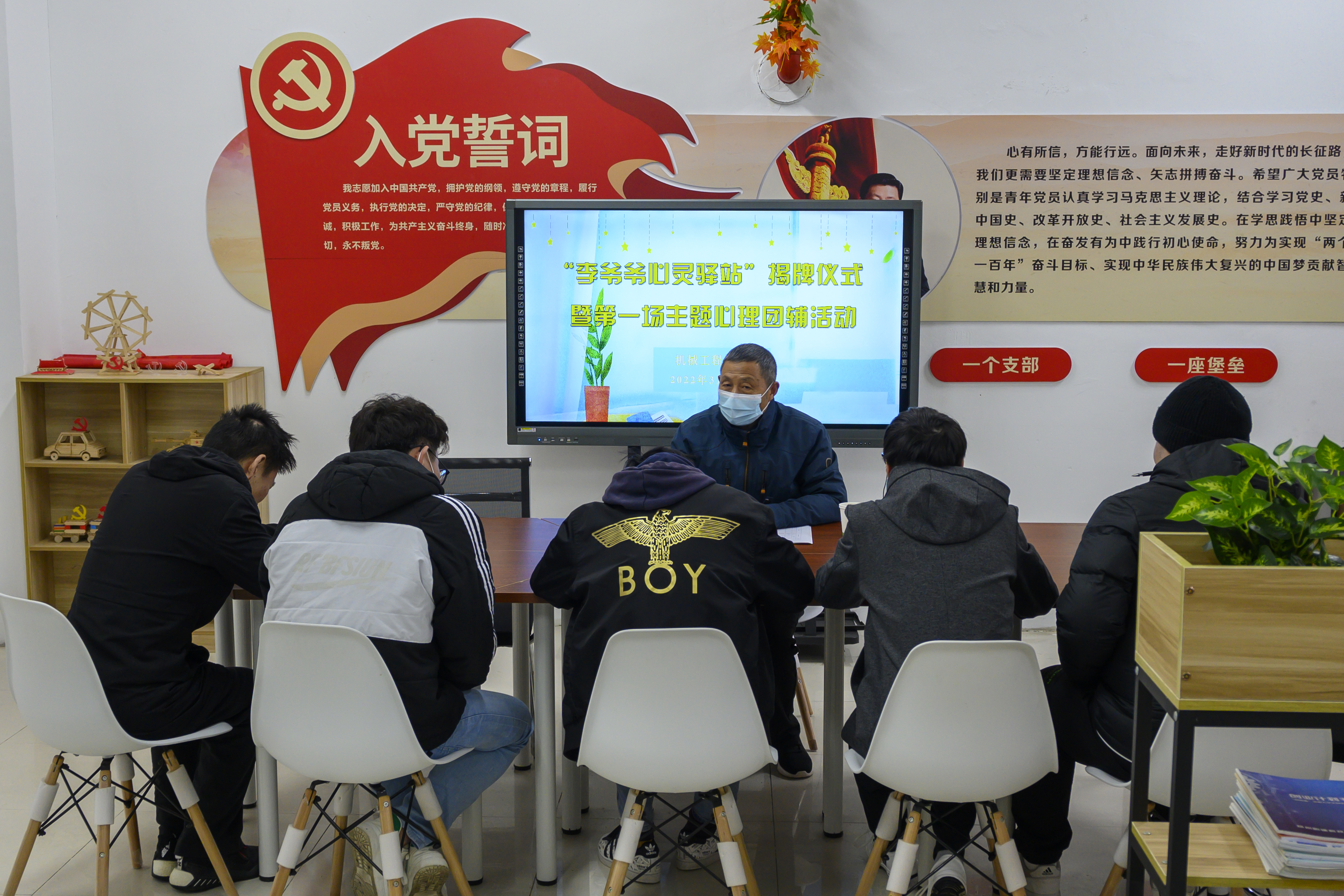 3月25日下午,机械工程学院在扬子津校区5号学生公寓辅导员工作室举行“李爷爷心灵驿站”揭牌仪式暨第一场主题心理团辅活动。学院党委副书记张平,江阳路北校区离退休第一党支部书记、校心理健康专家李传伟,5名学生代表参加此次活动。