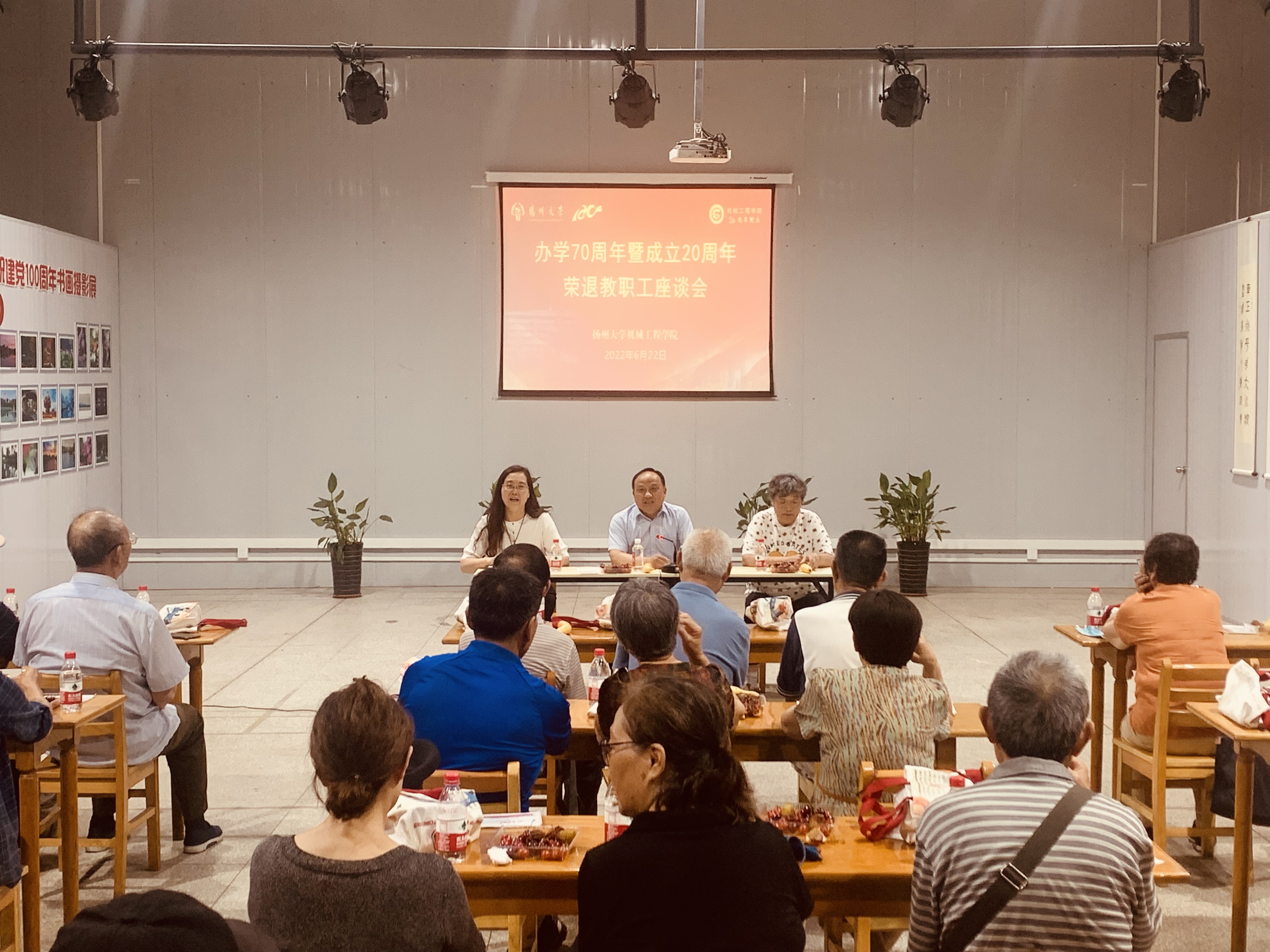 6月22日上午,机械工程学院办学70周年暨成立20周年荣退教职工座谈会在江阳路北校区离退休党总支活动会议室召开。学院党委书记、关工委名誉主任刘汉柏,党委副书记、关工委主任张平,江阳路北校区离退休党总支书记赵玉华,江阳路北校区离退休办公室主任贺兆林,学院团委副书记汪志国及荣退教职工代表30余人参加座谈会。张平副书记主持此次座谈会。