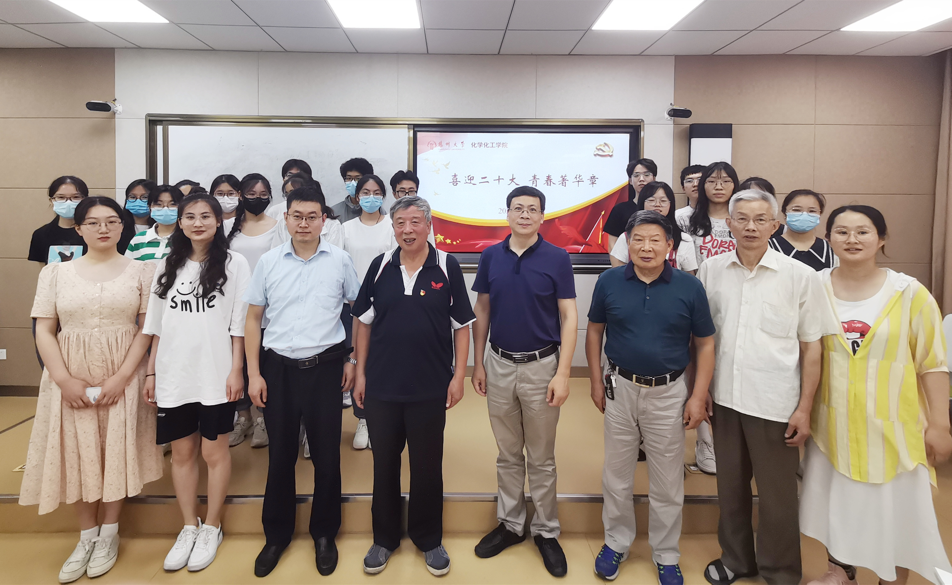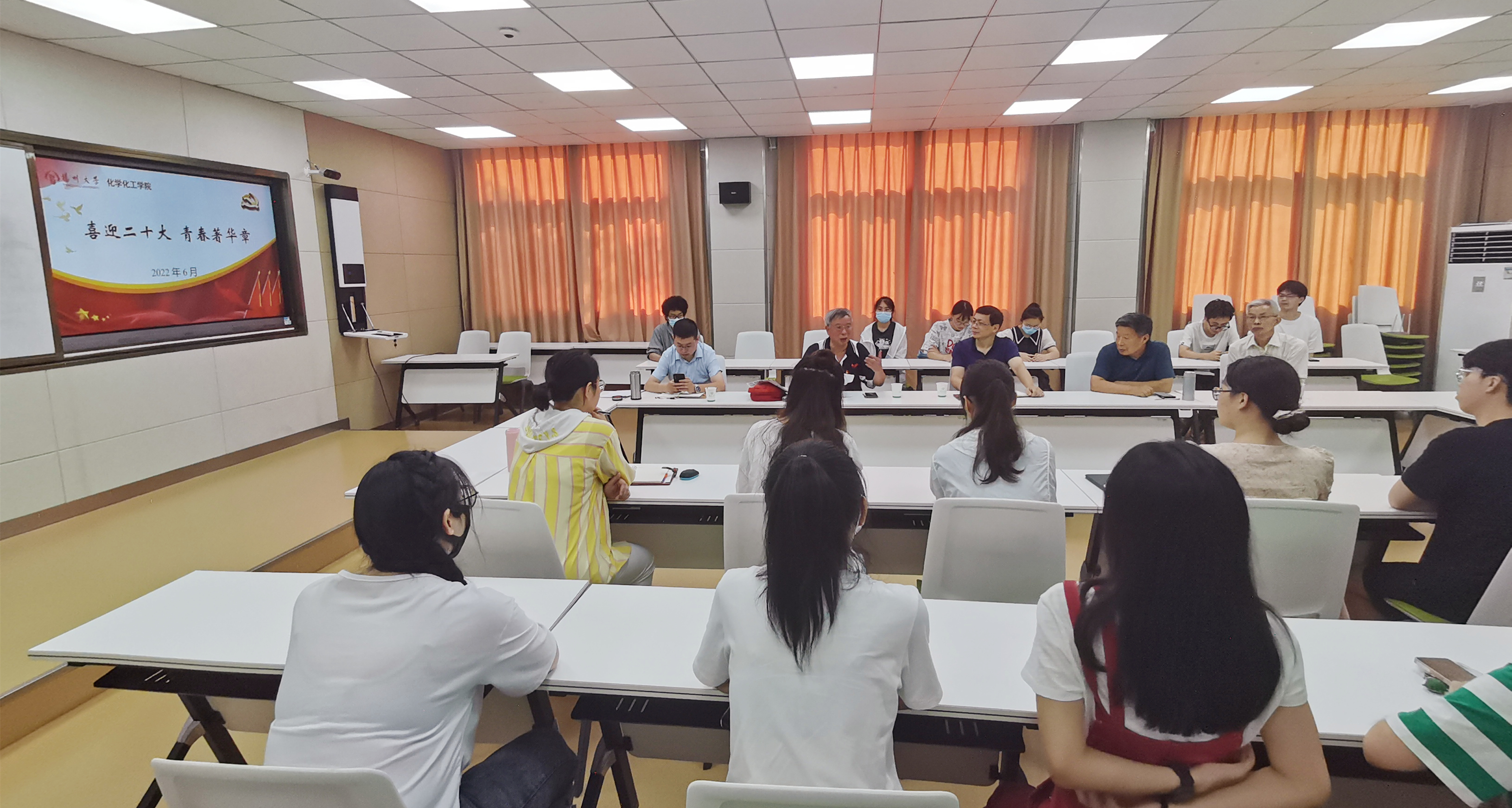 6月29日,化学化工学院在新化馆S213举办“喜迎二十大,青春著华章”主题恳谈会。校关工委办公室副主任刘方云、瘦西湖校区离退休第三党支部书记蒋宏圣、院关工委兼职组织员阚锦晴出席恳谈会。化学化工院党委副书记高延安主持会议。院团委书记、学工办主任陈松庆,辅导员叶晓枫与共建班级化教2002班学生代表参加会议。