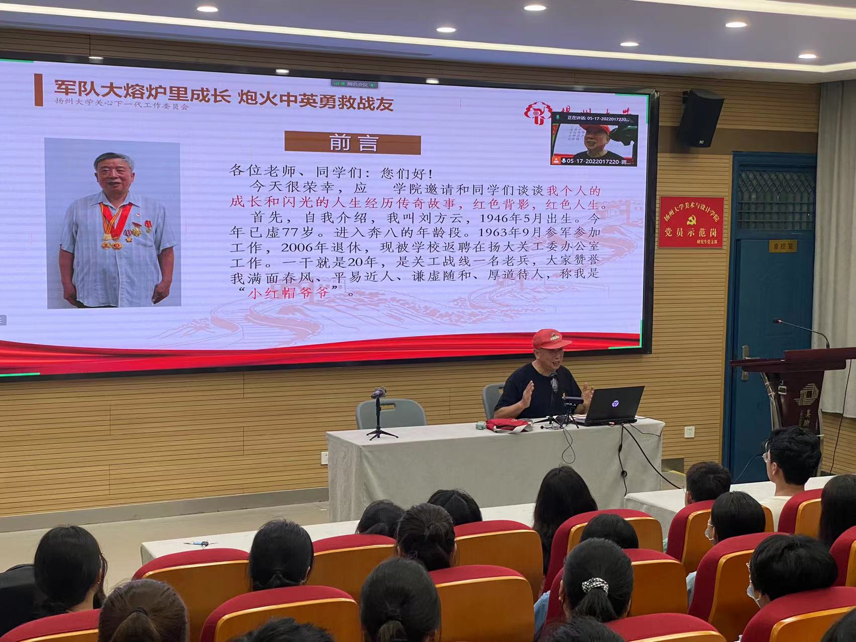 近日,美术与设计学院于报告厅举行了一场以“军队大熔炉里成长,炮火中英勇救战友”为主题的特别讲座。此次讲座,美术与设计学院有幸邀请校关工委刘方云主任作为主讲人,向我们讲述了他在炮火中的传奇经历。