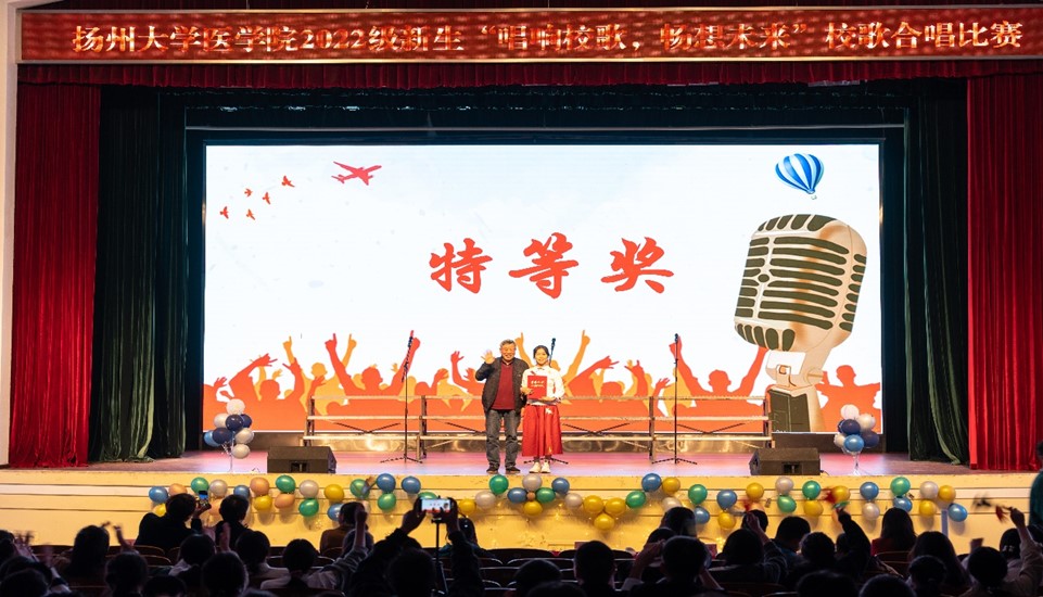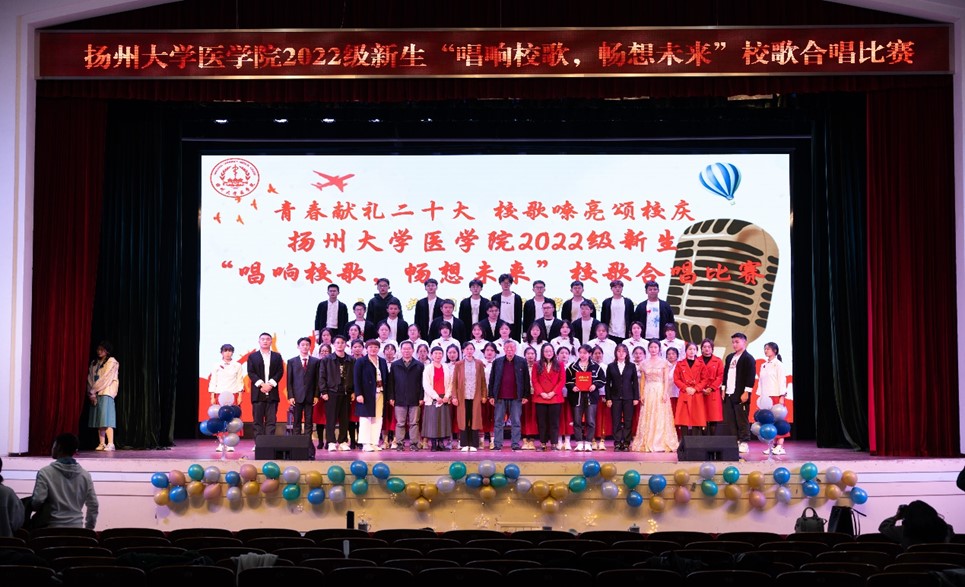 为进一步贯彻扬大精神、激发扬大学子的爱校热情,2022年11月5日晚,医学院于文汇路校区大礼堂举办了2022级新生“唱响校歌,畅享未来”校歌合唱比赛。校关工委校关工委办公室副秘书长、办公室副主任刘方云老师,校团委组宣部部长刘娟老师,院关工委张清莉老师,基础医学与医学技术系党总支书记李国才老师,中西医结合学系副主任钱亚云老师出席本次比赛。