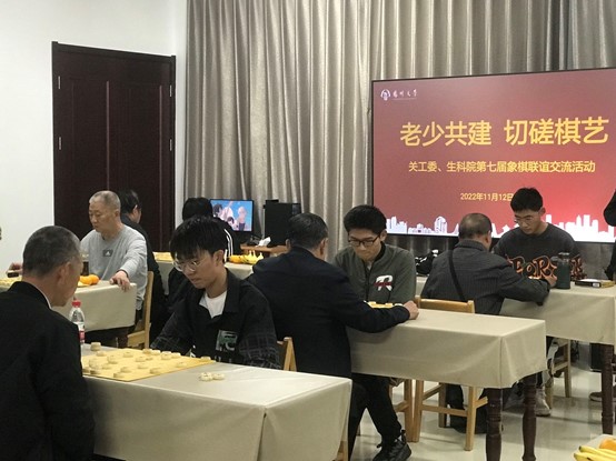 为促进我院学生与校关工委老同志的交流,让同学们通过棋局,学习老同志们的生活经验与优秀品质。11月12日下午,学院举办“老少共建 切磋棋艺”第七届老少象棋联谊交流活动。校关工委刘方云主任、生科学院党委副书记廖善光老师出席本次活动。