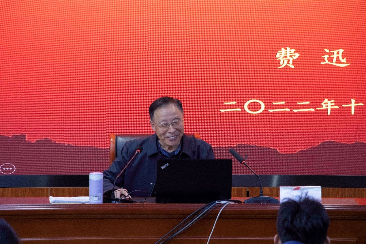 费老师围绕新时代十年的伟大变革及其里程碑意义、开辟马克思主义中国化时代化新境界、以中国式现代化全面推进中华民族伟大复兴的使命任务、对未来五年党和国家各项事业发展的战略部署、以党的伟大自我革命引领伟大社会革命的重要要求、为全面推进中华民族伟大复兴而团结奋斗、党对新时代新征程上中国新青年的殷切期望等七个方面展开分享。