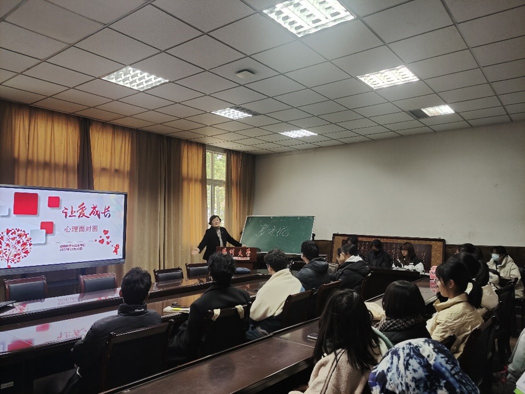 2022 年11月30日上午,动科学院邀请罗方妮老师为学院2022级新生开展心理面对面座谈会,就入学适应性问题、宿舍人际关系、恋爱观等日常问题进行面对面答疑解惑。