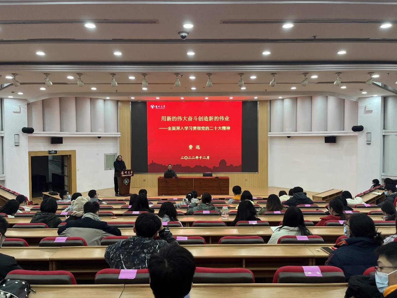 12月4日上午,校关工委费迅老师在荷花池校区为学院学生党员作学习宣传党的二十大精神宣讲,学院本科生、研究生党员120余人参加,宣讲会由学院党委副书记高红明主持。