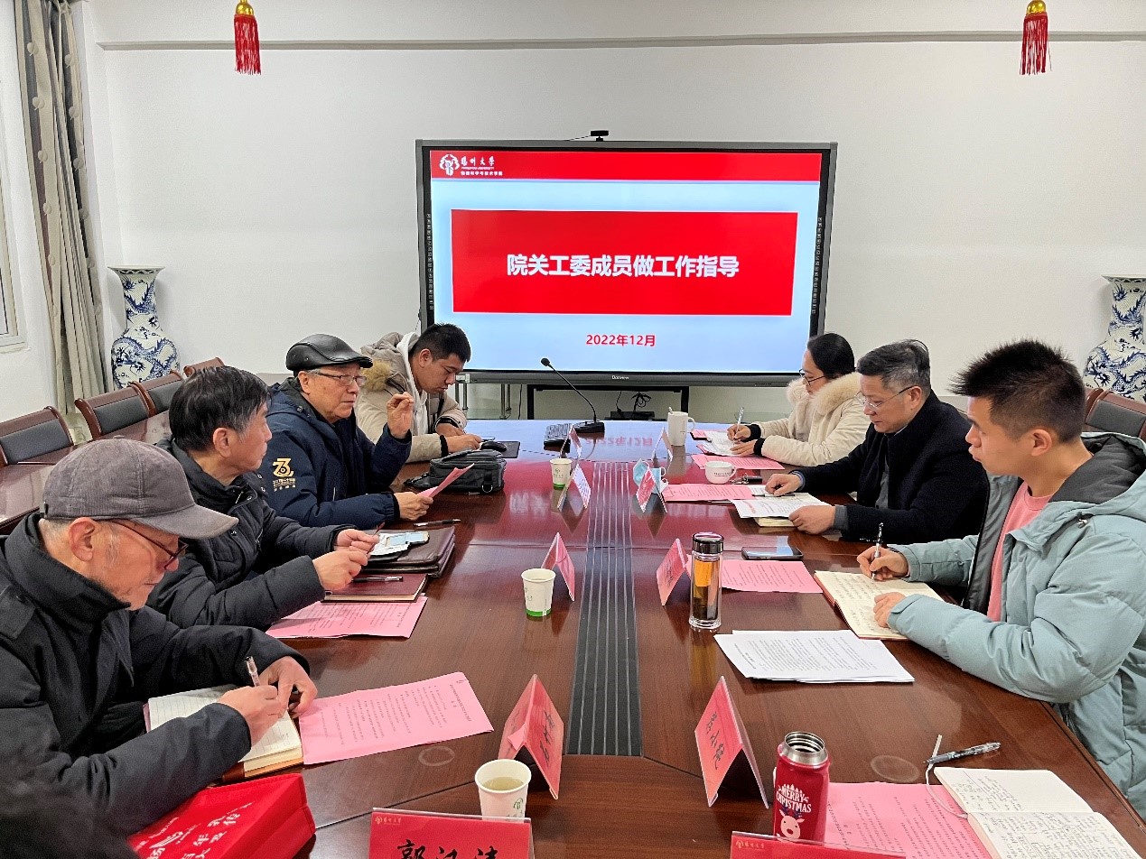 12月2日下午,物理学院在物理楼213会议室举行了关工委2022年工作推进会。院党委书记、关工委名誉主任王春雨、院党委副书记毕瑜林、院关工委副主任顾长华、院关工委副主任陈庆琉、院关工委副主任石竹南和院全体团委老师出席会议。会议由院党委副书记毕瑜林主持。