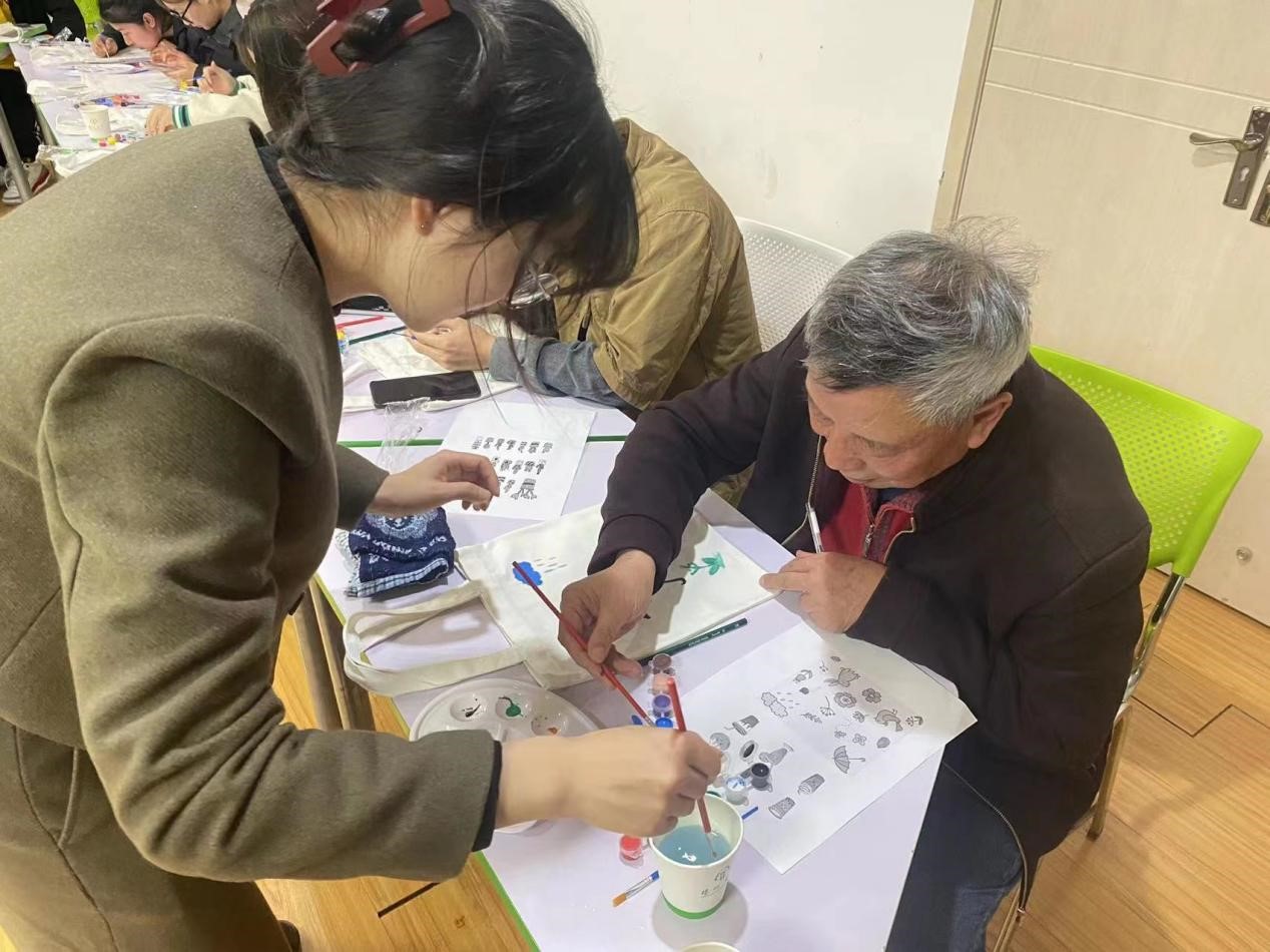 随后,贾明俊老师讲授了环保布袋绘画基本技巧和注意事项,大家在了解基础的绘画技巧后开始涂鸦,过程中,大家相互交流,体验绘画时心灵的纯粹与美好。