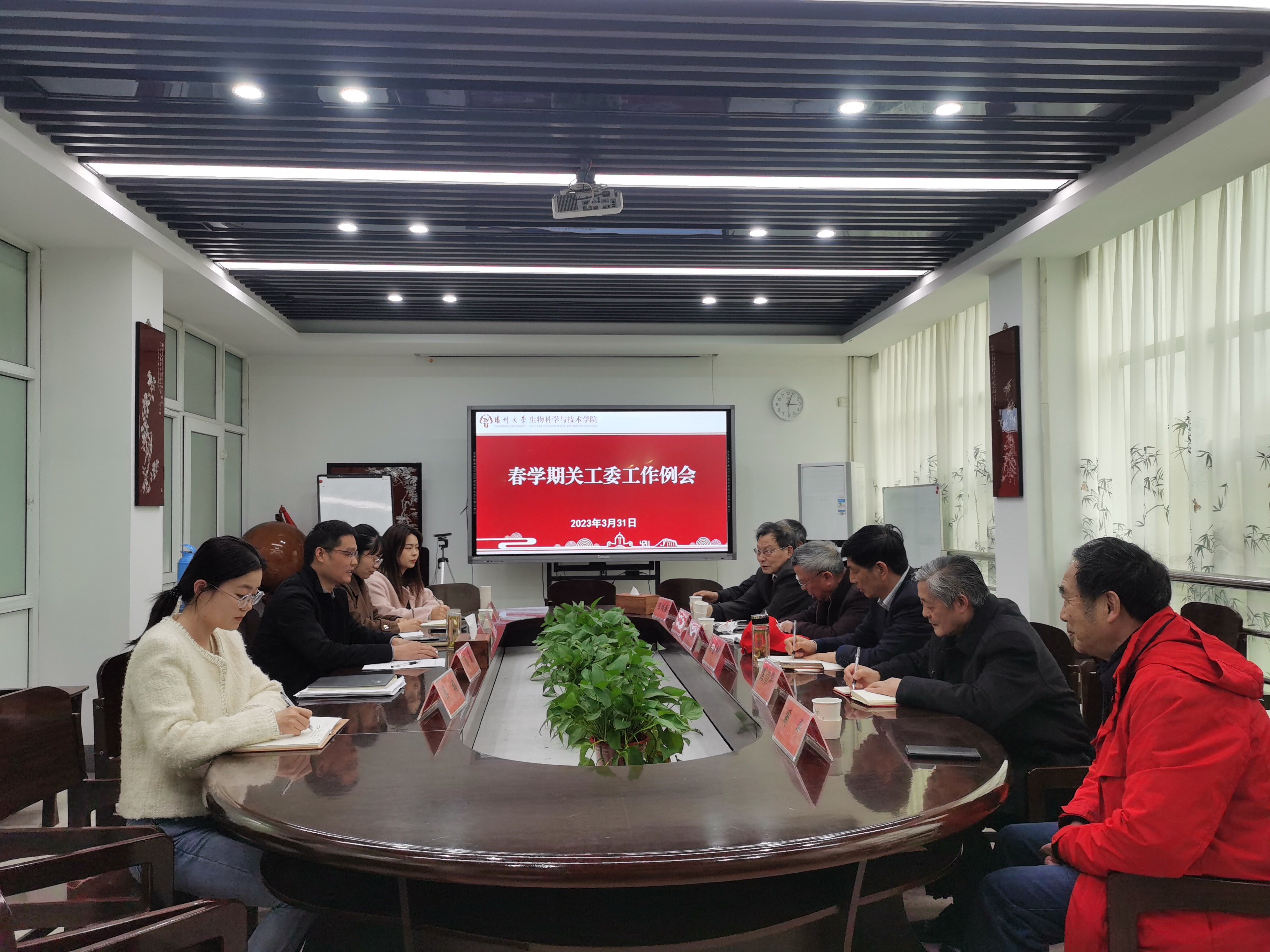 3月31日下午,生科学院在文汇路校区8号楼三楼会议室召开2023年春学期关工委工作会议。本会议由院党委副书记廖善光主持,校关工委顾问刘方云,校关工委副主任、院关工委常务副主任吴春明,院关工委老同志以及全体辅导员参加会议。
