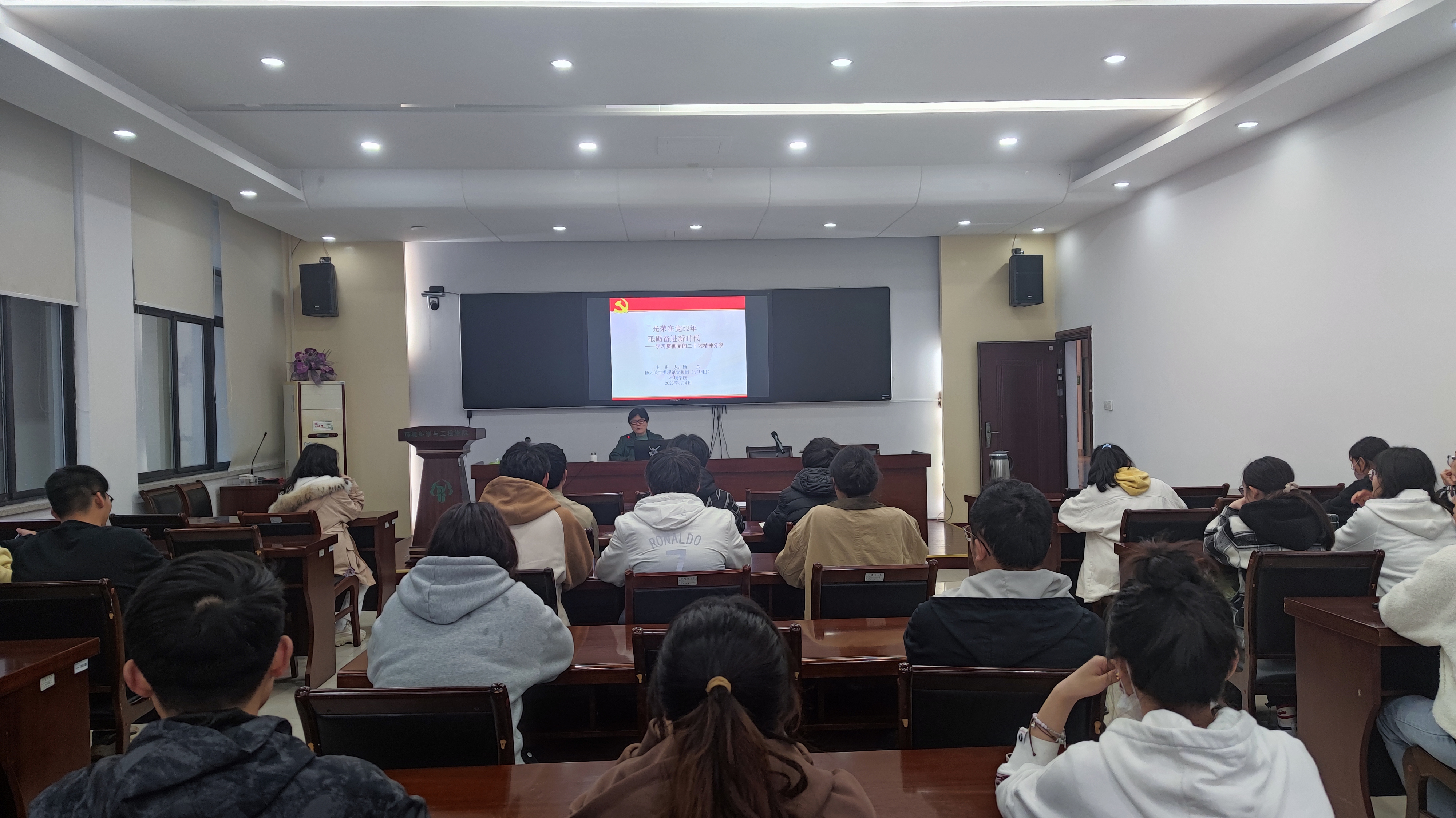 4月4日晚,环境学院于学行楼S210举办第二期青年学习社第二讲,邀请校关工委杨燕老师开展 “光荣在党五十二年,砥砺奋进新时代”学习二十大精神主题讲座,学院入团积极分子、入党积极分子及全体主要学生干部参加本次讲座。
