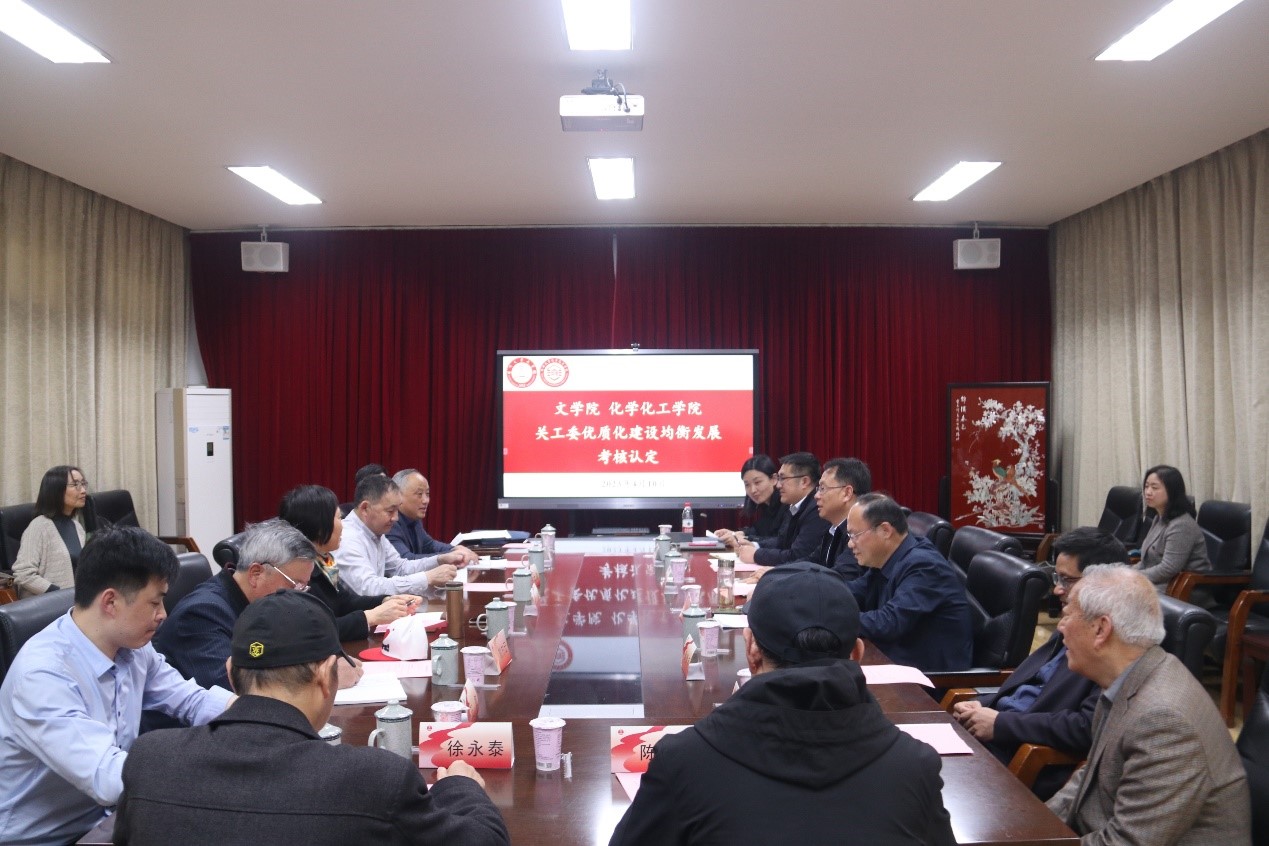 4月10日下午,文学院、化学化工学院在瘦西湖校区40号楼二楼会议室接受校关工委首批优质化建设均衡发展考核。校关工委考核认定小组成员李士庭、赵春丹、刘汉柏、刘方云、陈翱翔、毛连军、王敏,文学院和化学化工学院关工委班子成员等出席本次考核。