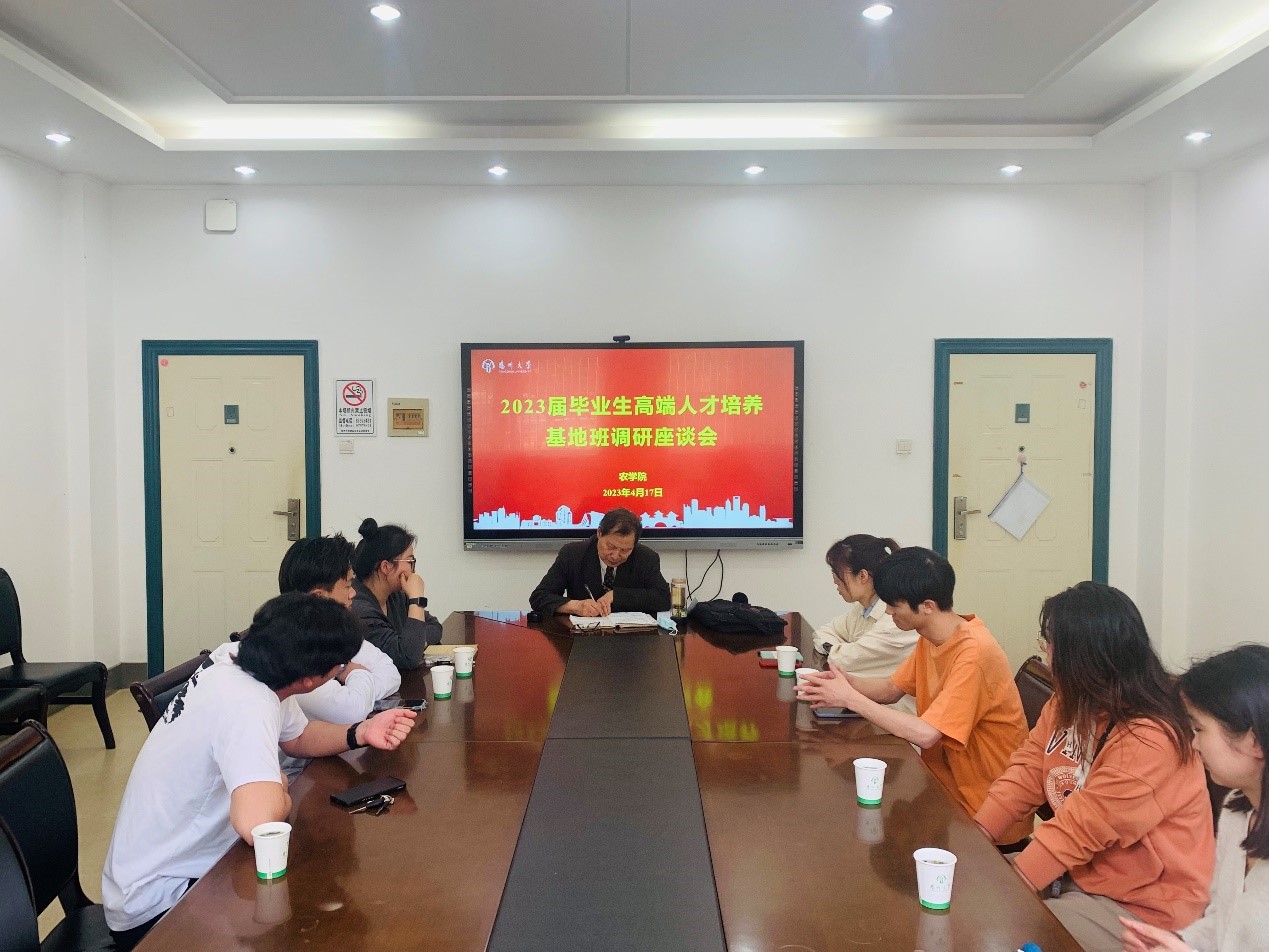 近日,农学院组织召开2023届毕业生高端人才培养基地班调研座谈会,深入调研毕业生就业现状和思想动态,17名本硕毕业生代表聚焦毕业就业、人才培养、党建科研等话题畅谈感想,为学院把稳把好毕业就业质量关,深化人才培养长效机制提供有益建议。学院关工委副主任黄祖六老师、关工委执行秘书董如壮老师以及毕业生专职辅导员出席座谈会。