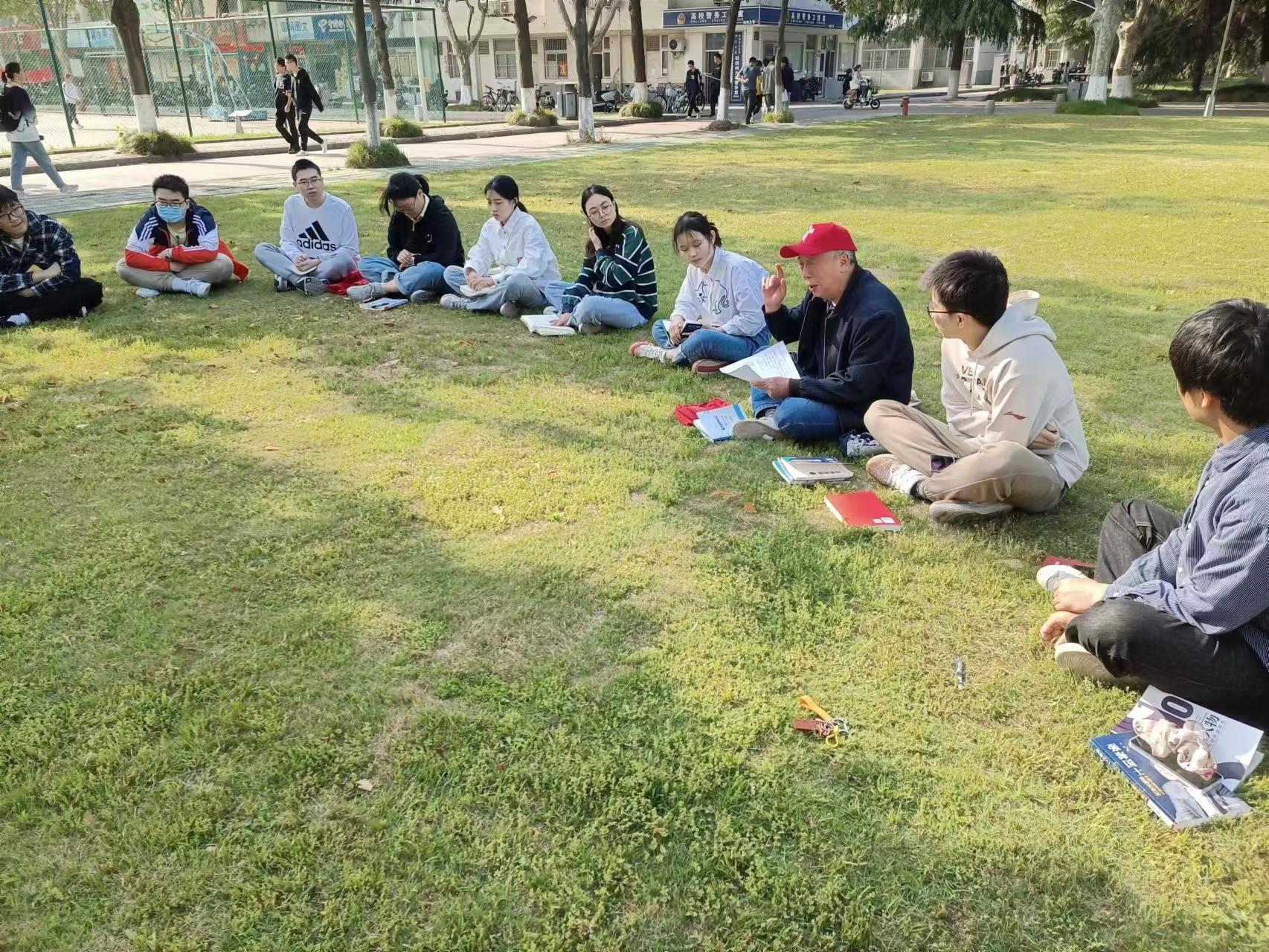 为深入领悟党的二十大精神,教育引导广大学生树立劳动光荣的理念,深化对海洋强国事业的认识,增强做中国人的志气、骨气和底气,4月21日下午,化学化工学院特邀校关工委顾问刘方云与化学本科生党支部、化学(师范)专业团支部学生代表在瘦西湖校区理科楼草坪开展“劳动造幸福,海洋兴中华 ,争做优秀师范生”草坪恳谈会。