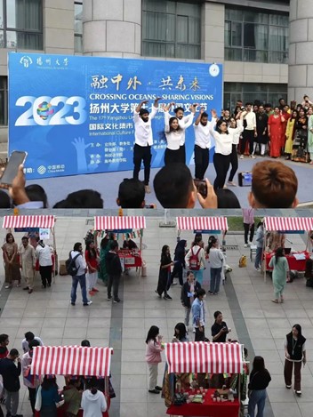 Crossing Oceans·Sharing Visions国际文化集市首先与大家见面。18个国家的文化荟萃于此,不同国家的学生共同奔赴一场文化盛宴。由中外学生共同策划、共同设计、共同布展的国际文化集市充分展示各国风土人情和特色美食。