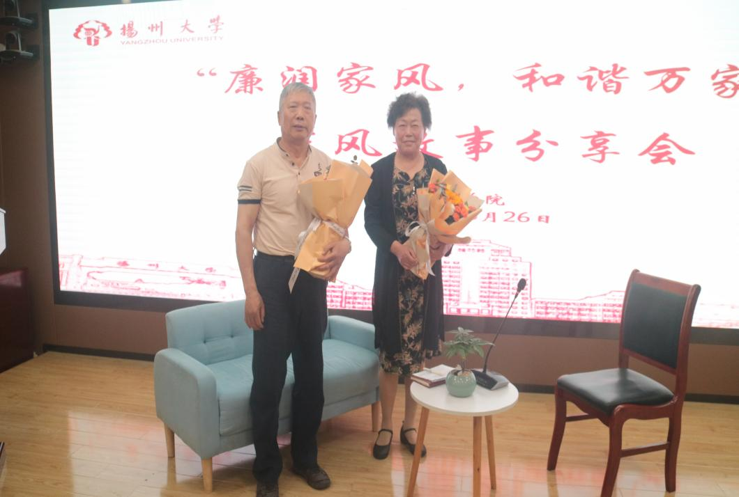 刘煜老师则是从父亲去世前的嘱托开始,向同学们讲述了父亲廉洁的工作作风对自己的影响,身教比言传更有力量。在他就任扬州大学农牧场党总支书记时,他便秉承着“当官不像官,做人要像人”的家训去做实事、做真人。