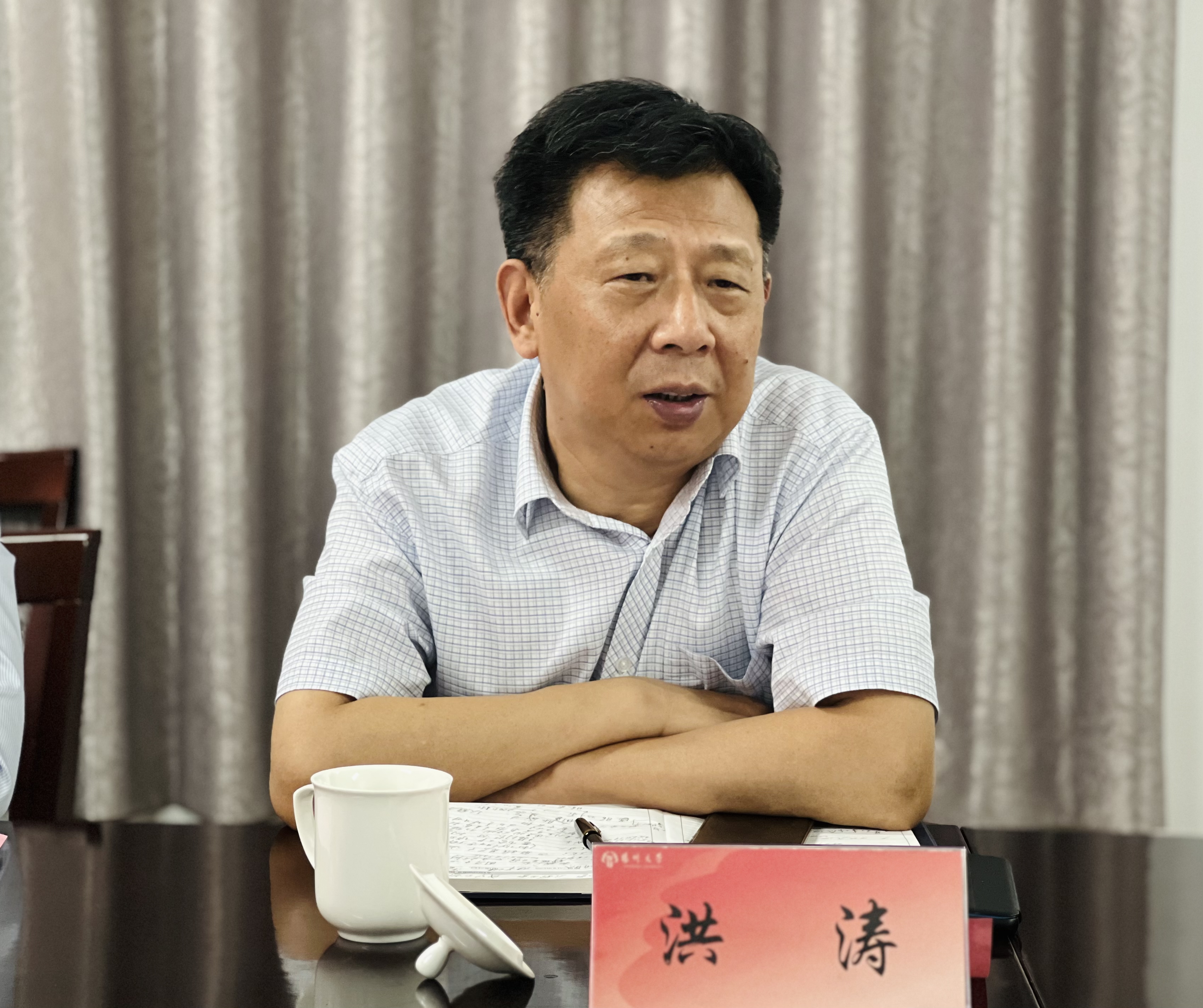 洪涛对调研组一行的到来表示热烈欢迎。他指出,正值深入开展学习贯彻习近平新时代中国特色社会主义思想主题教育过程期间,希望两校通过此次调研交流,聚焦铸魂育人,相互学习借鉴,共同推动两校关工委、离退休工作取得新进展。