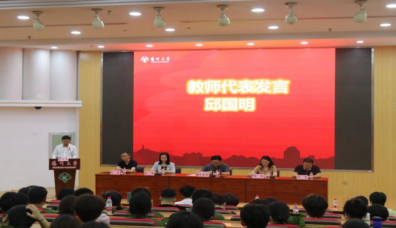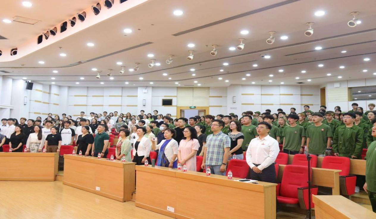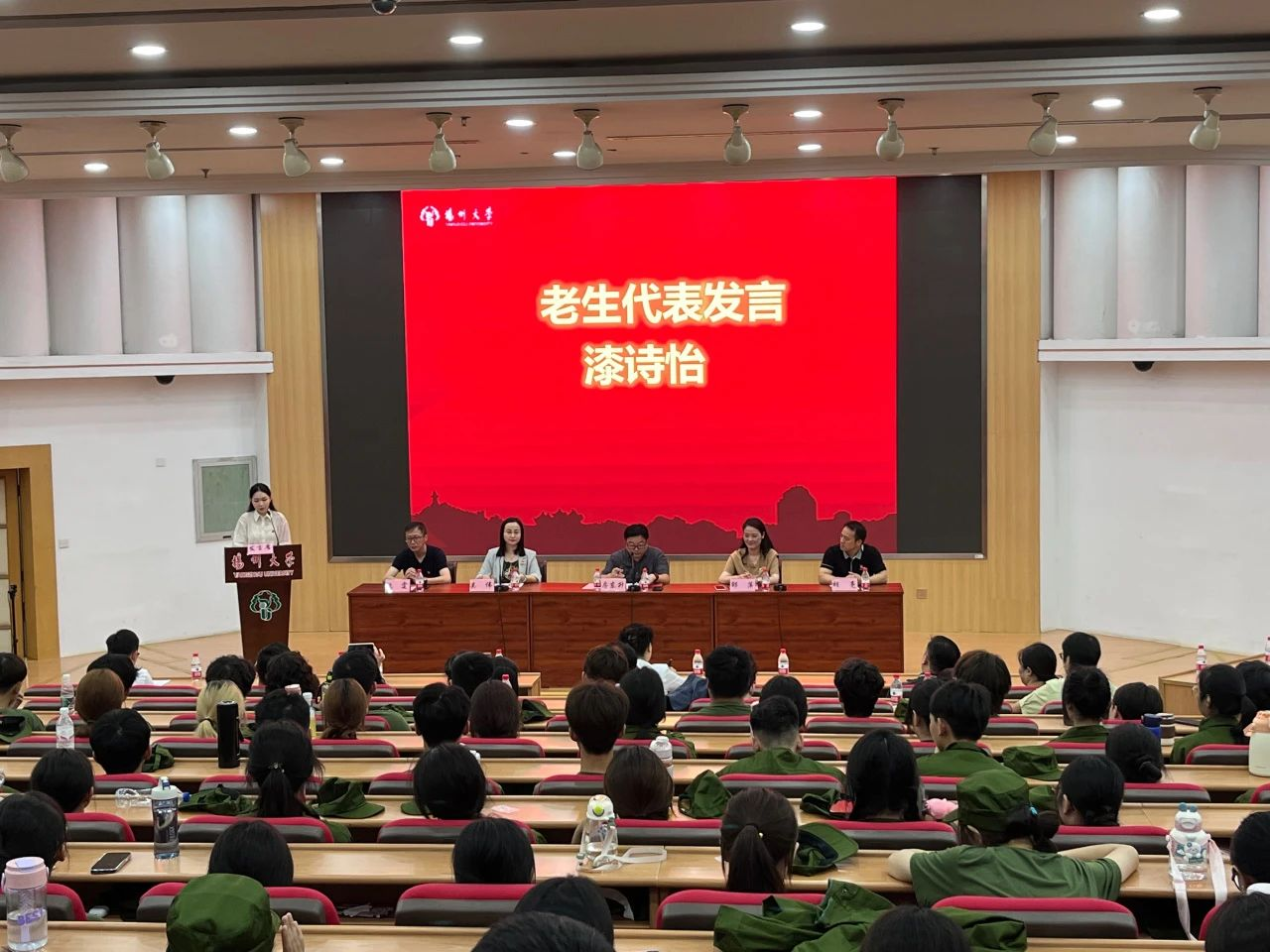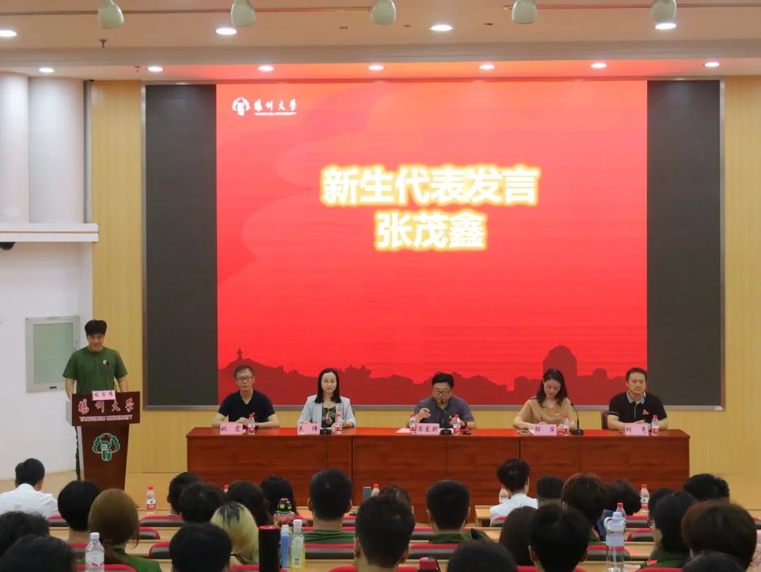首先,由新生代表张茂鑫同学发言。他分享了进入大学的喜悦,同时表示大家已经踏入了新的人生篇章。他将和同学们一起秉持扬大“坚苦自立”的校训,自主学习、涵养德行、坚守本心,不可辜负大好青春年华,当用努力的汗水书写人生华章。