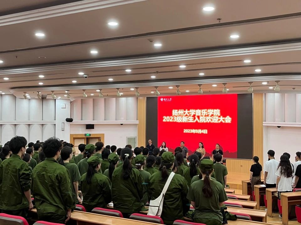 9月初,音乐学院2023级新生欢迎大会在荷花池逸夫图书馆报告厅举行。音乐学院党委书记房东升、院长邵萍、院党委副书记吴伟、副院长胡亮、副院长姚霆、学院关工委常务副主任杨华、关工委老同志袁野、院长助理、各专业主任及教研室主任、院综合办公室全体老师、辅导员老师、新生班主任、学生干部代表以及2023级全体本科生和研究生参加了此次欢迎会。会议由院党委副书记吴伟主持。