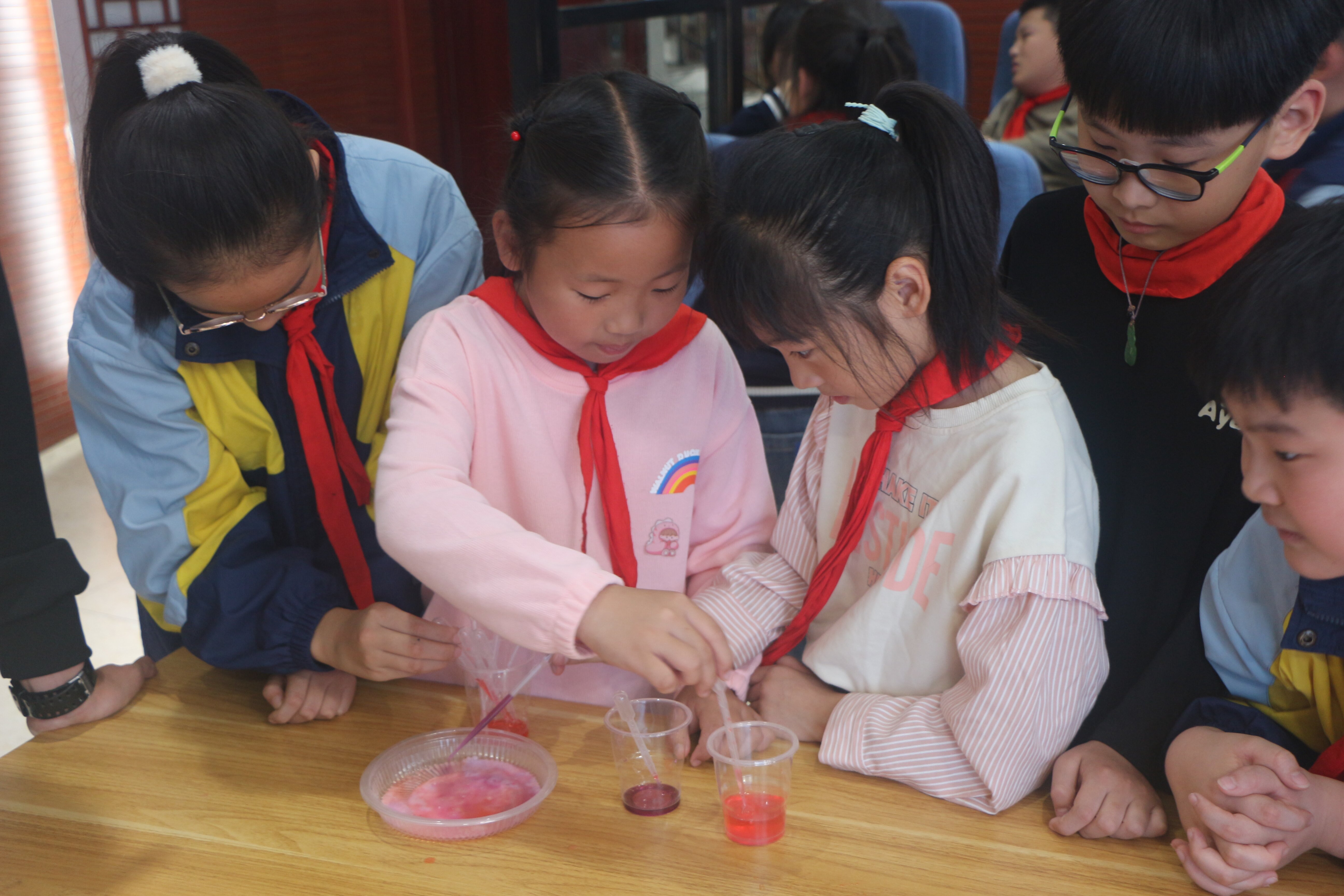 活动现场氛围异常热烈。阚锦晴教授从生活中的衣、食、住、行出发,向小学生们科普生活中的化学知识,让孩子们发现原来生活中处处充满“化学”。在阚老师和大学生志愿者们的共同引导下,小学生们还动手体验了“吹气球”“跳舞的水晶球”“岩浆画”3个趣味化学实验,学生们热情、积极地加入到实验中,感受到了实验的乐趣,体验了化学反应的奥妙,激发起学生们对化学知识、科学知识的热爱。