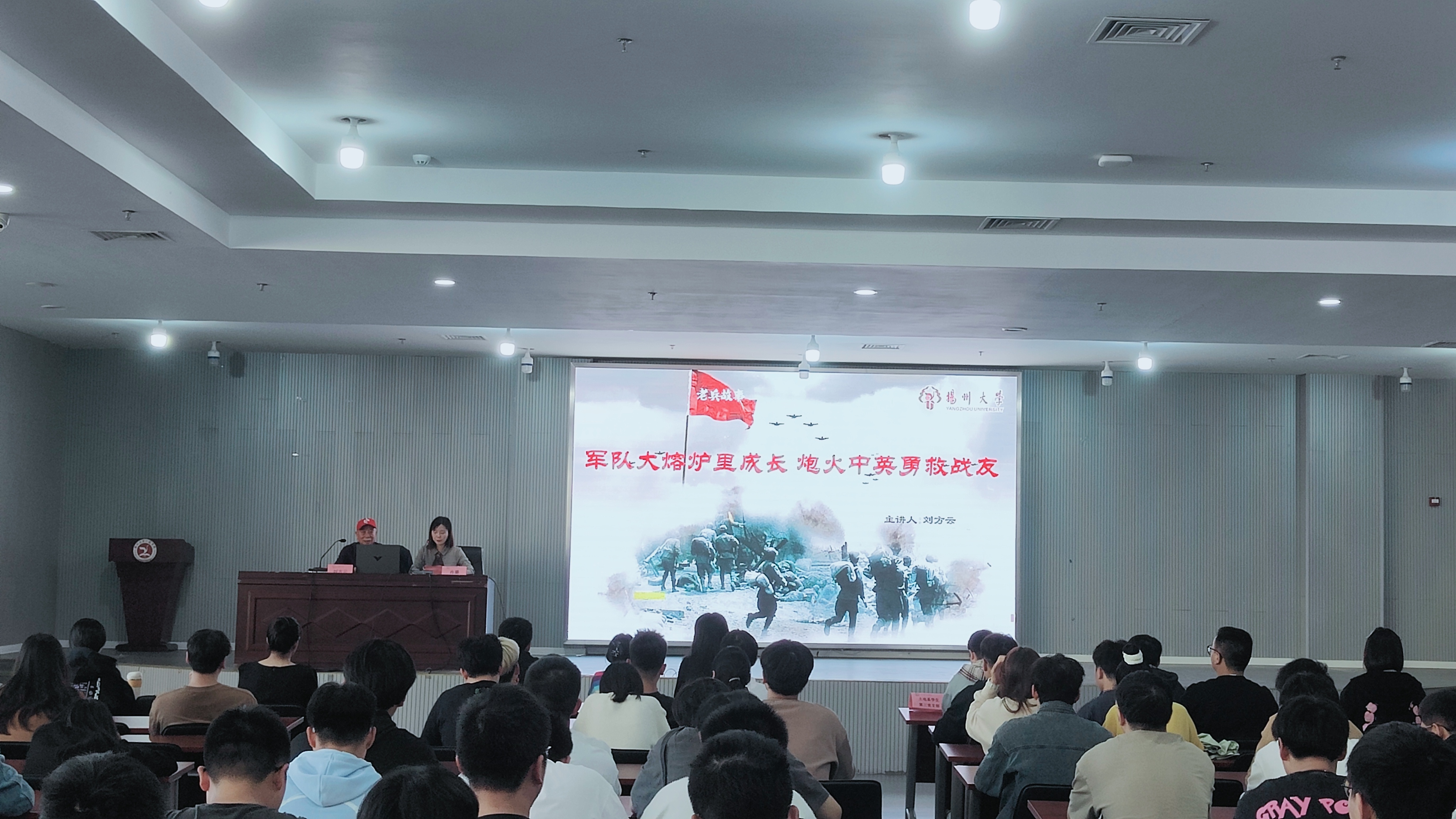 爱国,对于中华民族而言,是一个永恒的旋律,为加强爱国教育,厚植爱党爱国情怀,土木电气工程系于10月31日下午2:30在文体馆二楼多功能厅开展“军队大熔炉里成长 炮火中英勇救战友”专题党课。本次党课由扬州大学关心下一代工作委员会顾问、校关工委理论宣讲团刘方云老师担任主讲人,土电系党总支副书记肖璐老师主持,土电系学生党员和2023级新生参加。