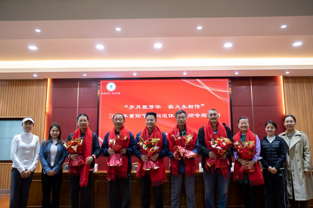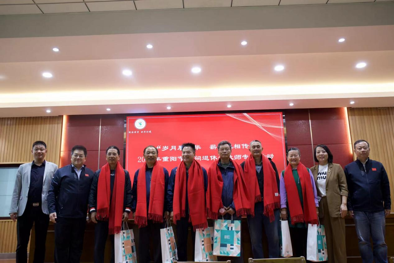 座谈会期间,学院领导班子为退休老教师们颁发纪念品,新引进教师向退休老教师献花,表达尊敬和感激之情。