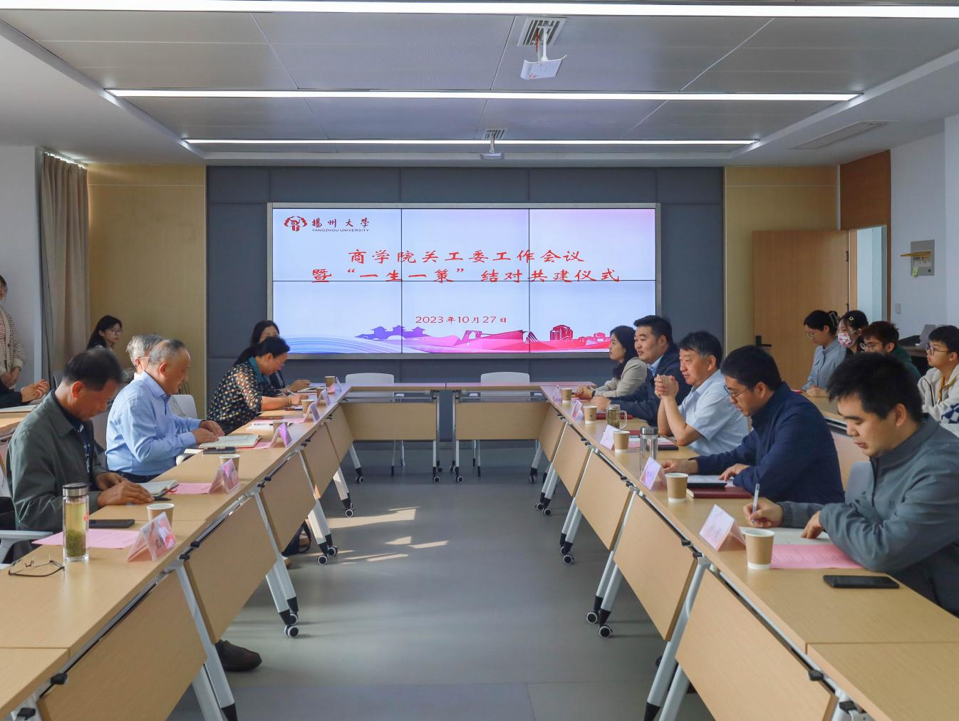 10月27日,商学院举办关工委工作会议暨“一生一策”结对共建仪式。校关工委办公室主任、副秘书长刘汉柏,校关工委秘书王琳,校关工委扬子津校区联络站主任刘军,院关工委老同志蒋建刚,院关工委老同志沈桂林,院关工委老同志施文洁,院党委书记孟益宏,院关工委成员和结对班级学生代表、结对学生出席本次会议。院党委副书记姚丰华主持会议。