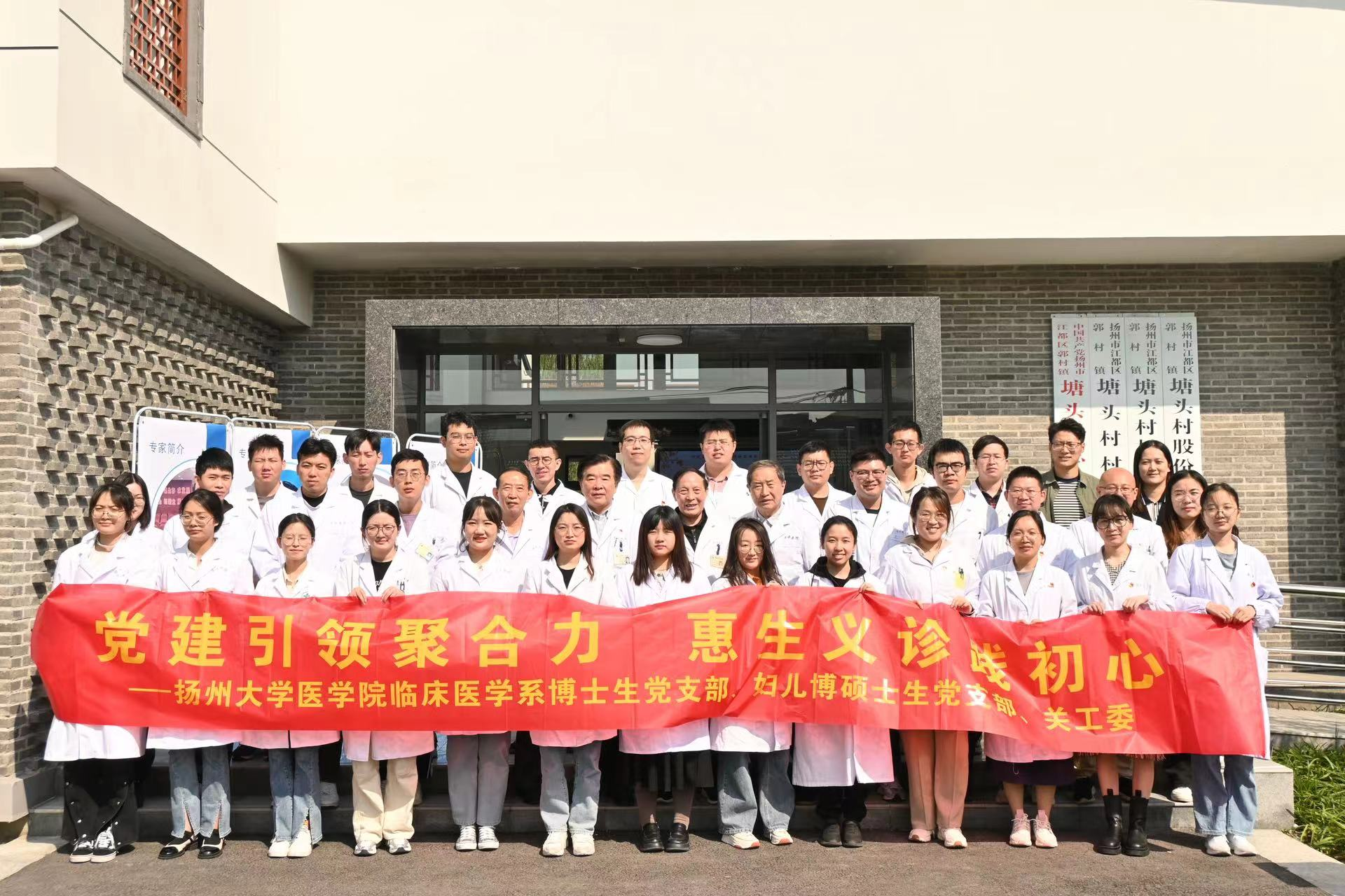 原扬州大学医学院院长、临床医学系博士生党支部书记、苏北人民医院胸心外科专家史宏灿教授携手三位扬州大学医学院离退休教师,内分泌科专家丁立教授、肝胆外科专家张培建教授,中医专家孙保生教授以及扬州大学医学院临床医学系博士生党支部、妇儿博硕士生党支部三十余名博硕士研究生党员参加义诊,现场开设胸心外科、中医科、内分泌科、肝胆外科等八个科室,以党建引领汇聚合力,为老区老年人提供全方位的义诊服务。郭村镇党委书记花长春、郭村镇党委副书记倪琪、郭村镇宣传委员王兵以及相关部门领导、志愿者共同参加活动。