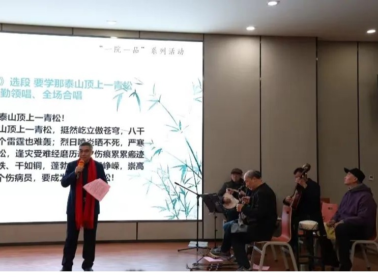 最后,京剧团的老艺术家们邀请在场各位领导共同上台,与同学们合唱《沙家浜》选段“要学那泰山顶上一青松”。合唱结束后,张武阳老师呼吁同学们去感受京剧、学习京剧,在唱念做打中品味百态人生。