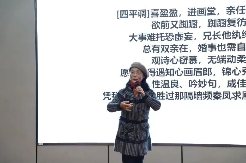 在演出开始之前,刘大年老师为大家倾情演绎了京剧《沙家浜》选段“要学那泰山顶上一青松”,并为现场的同学们进行教学。张武阳老师向同学们介绍了有关京剧的基本知识,黄勤老师则讲述了扬州与京剧的深厚渊源以及扬州大学京剧社团的社团情况,两位老师的讲解使同学们对京剧有了更深入的理解。