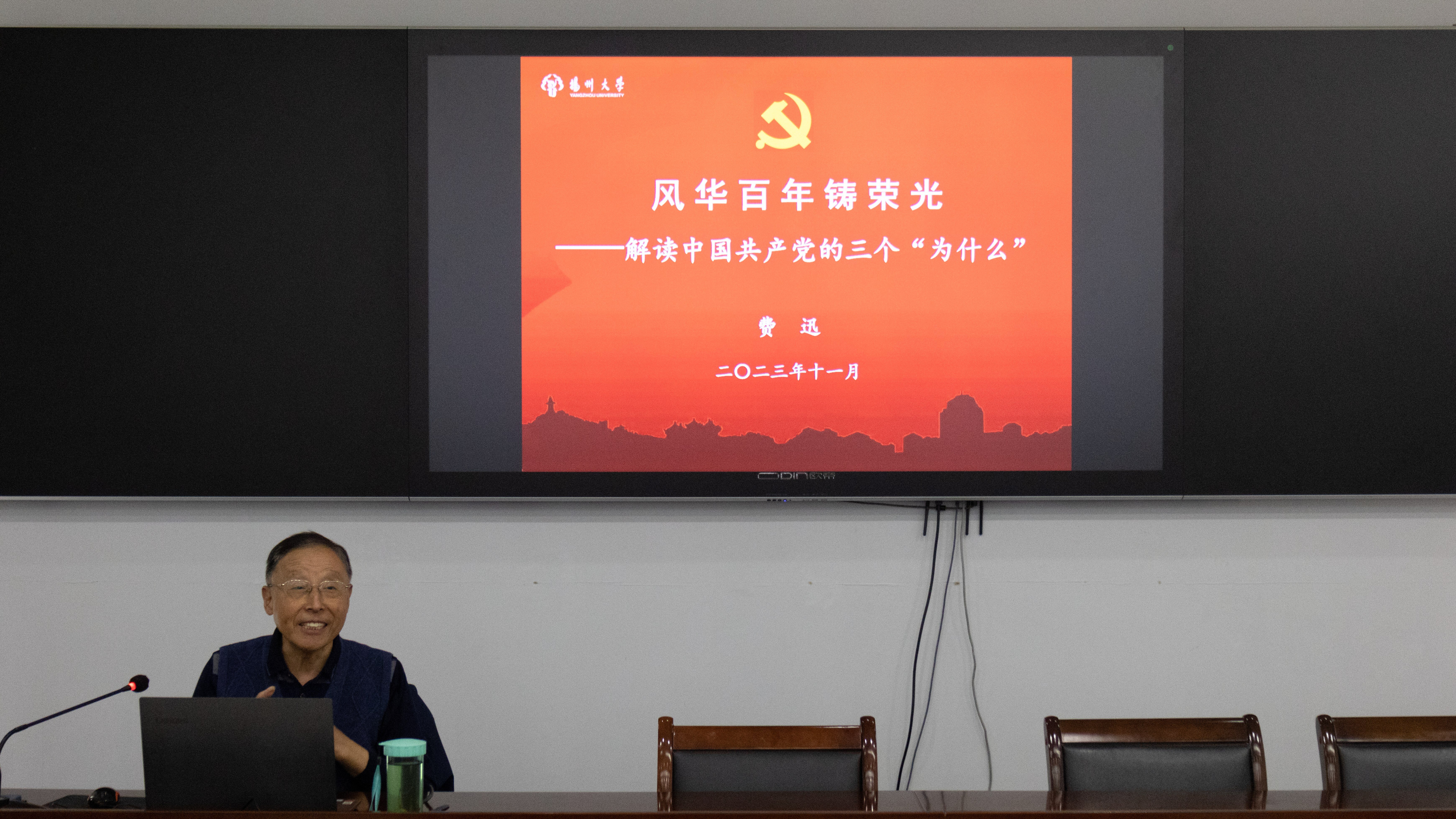 11月9日下午,环境学院于学行楼S210会议室开展“风华百年铸荣光——解读共产党的三个‘为什么’”主题讲座。本次讲座邀请校关工委费迅教授主讲,院党委副书记李玉军主持,院全体党员发展对象参加。