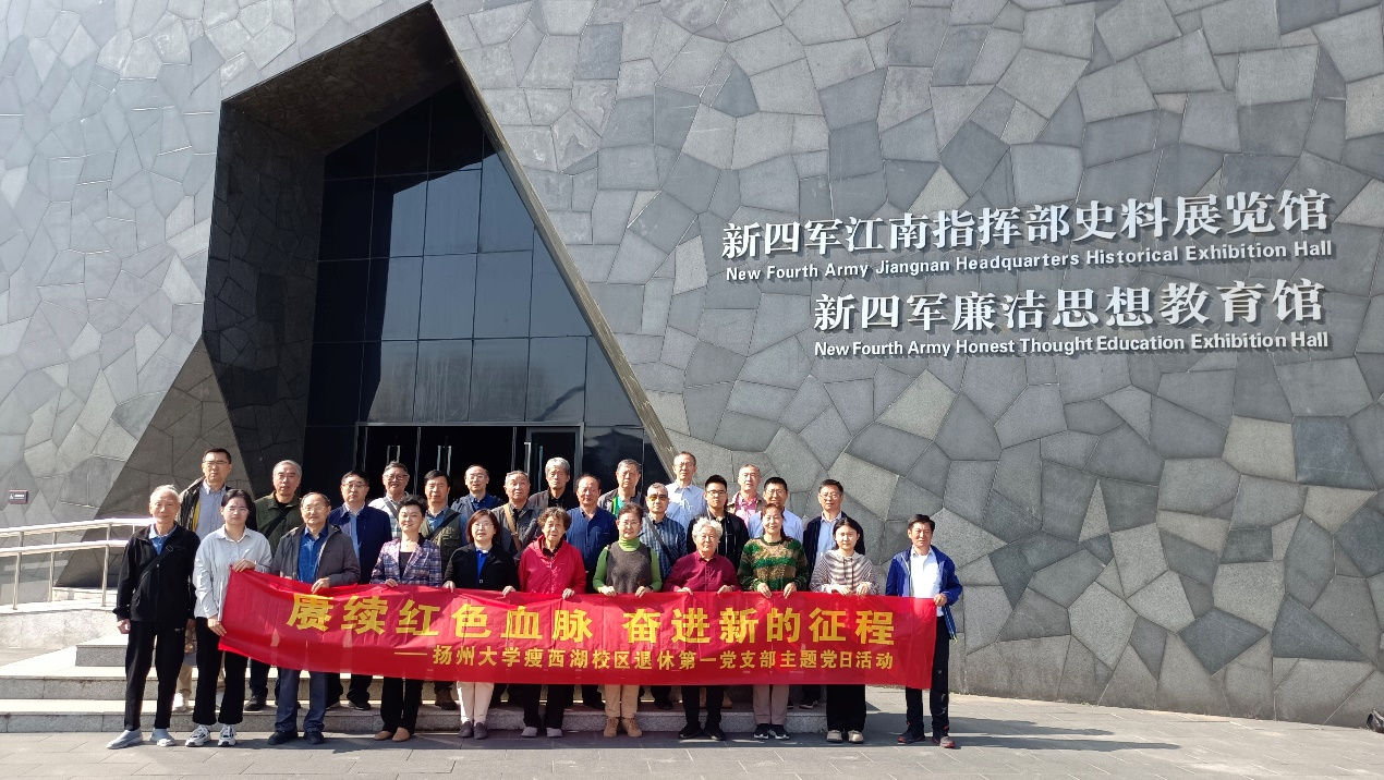 11月3日,瘦西湖校区离退休党总支第一党支部26名离退休教师与中文2201洪宗礼班的同学一行赴常州溧阳新四军江南指挥部纪念馆开展“走访红色纪念基地,缅怀赤诚报国之心”为主题的学习活动。