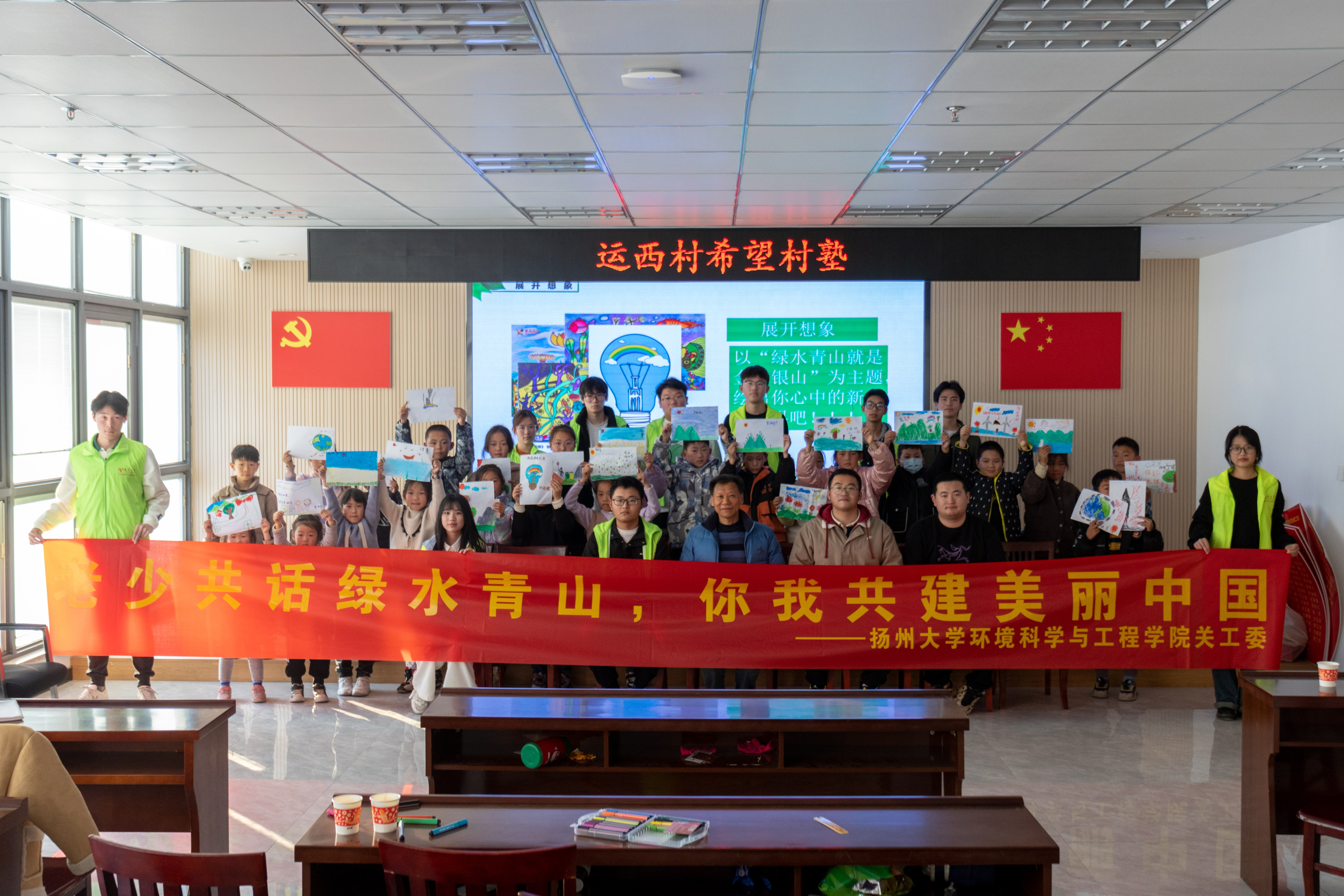 为培养青少年环保意识,助力美丽中国建设,2023年12月3日,环境学院关工委邀请校关工委刘军老师走进运西村希望村塾,开展以“老少共话绿水青山,你我共建美丽中国”为主题的老少共建活动。
