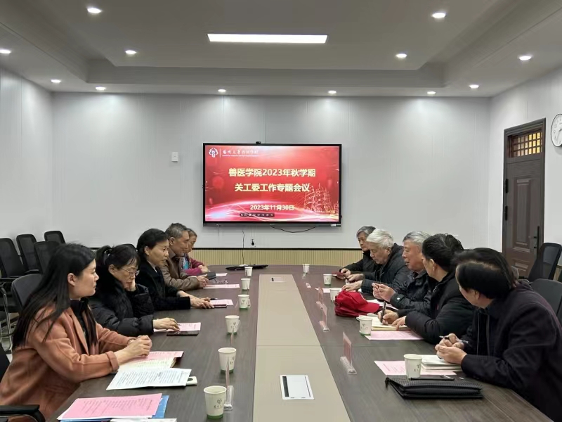 11月30日下午,兽医学院在文汇路校区33号楼方定一实验教学中心会议室召开了2023年秋学期关工委工作会议。校关工委副主任吴春明,校关工委顾问刘方云,文汇路校区离退休党总支退休三支部书记陈鹏,兽医学院关工委常务副主任宋亭华,兽医学院关工委副主任焦库华,学院党委副书记、关工委主任沙爱红,学院关工委委员王捍东、吴力力、黄维嘉,学院团委书记、关工委秘书长肖薇,学院关工委执行秘书岑珊出席会议。会议由沙爱红主持。