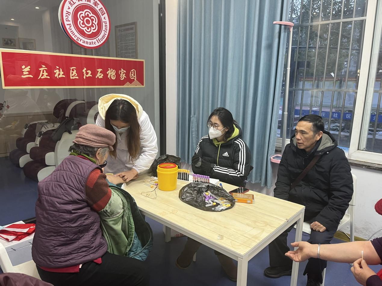 12月16日上午,体育学院李宁川教授带领团队走进扬州市邗江区邗上街道兰庄社区,为社区老人提供免费采血体检。院关工委老同志范朝信老师,院关工委执行秘书、辅导员贾明俊老师参加。