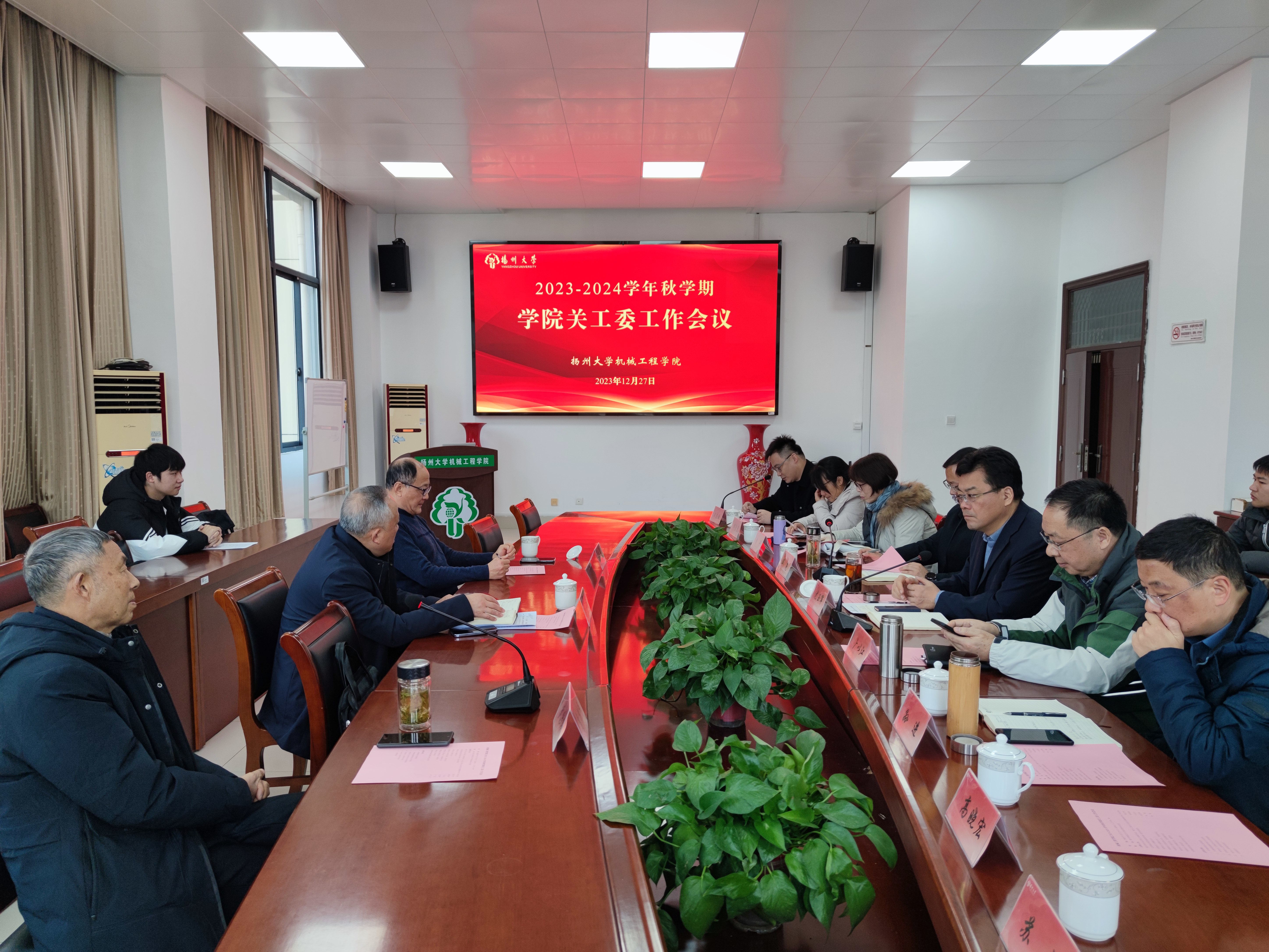 12月27日上午,机械工程学院于力行楼s318会议室召开2023-2024学年秋学期学院关工委工作会议,朗月学生社区党工委副书记、校关工委办公室主任兼副秘书长刘汉柏,江阳路北校区离退休第一党支部委员张卫宇,院关工委副主任李传伟、卜以江,院关工委名誉主任、党委书记尤玉军,院关工委主任、党委副书记毕亮,院关工委副主任、副院长孙进,学院关工委委员,共建班级机械2103班学生代表参加会议。会议由毕亮副书记主持。